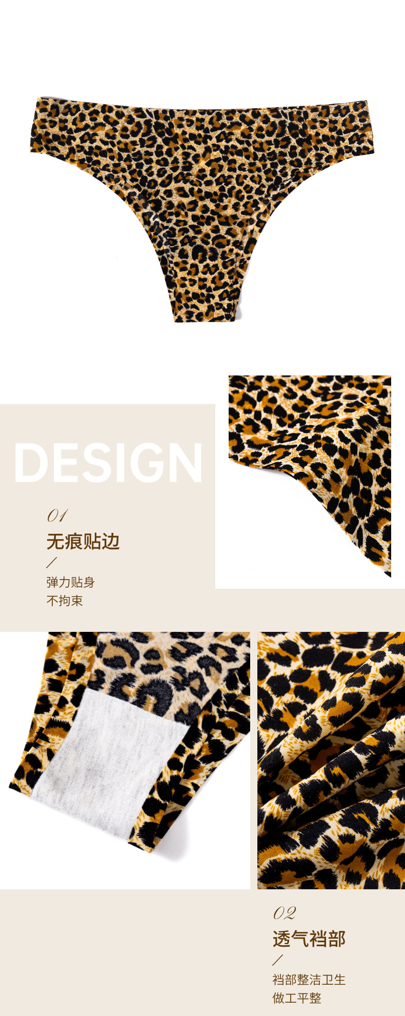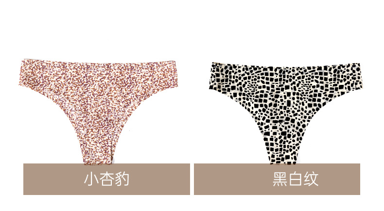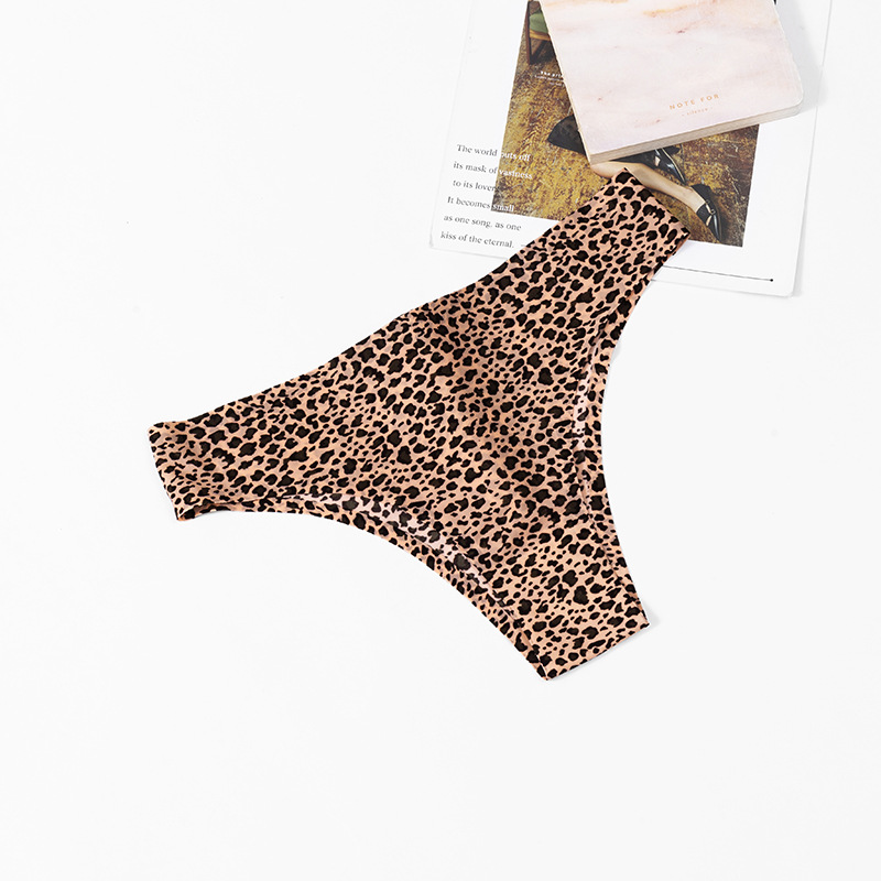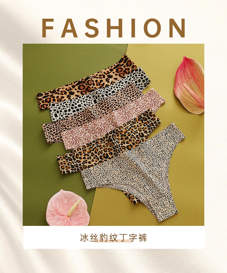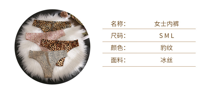 速卖通新款女士内裤宽丁字裤冰丝无痕裤头女性感豹纹比基尼巴西裤