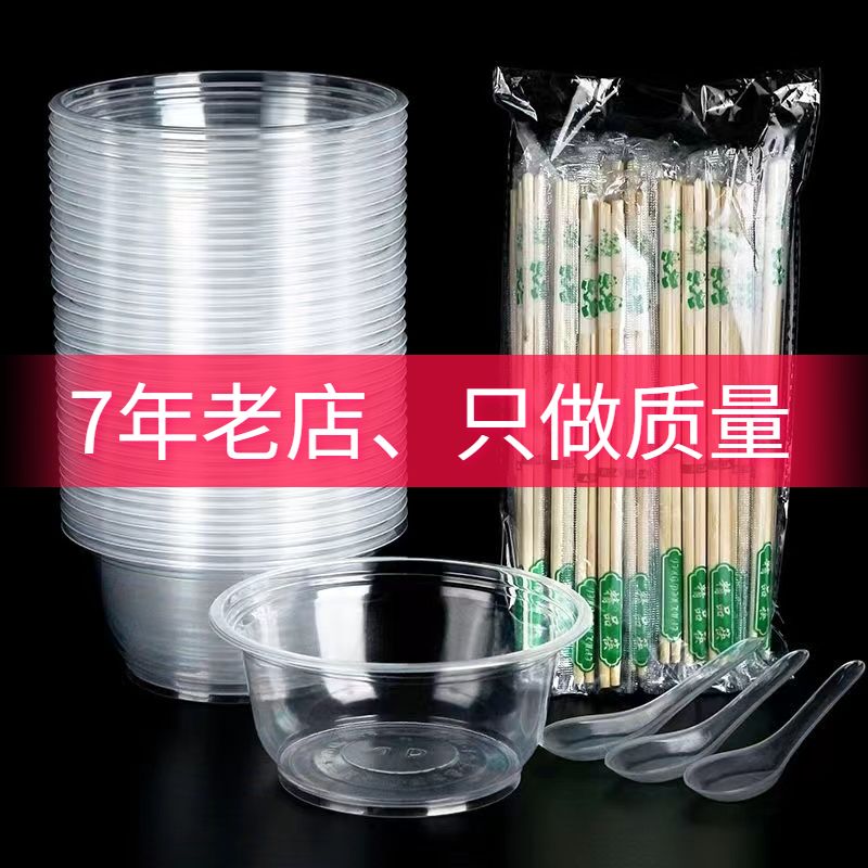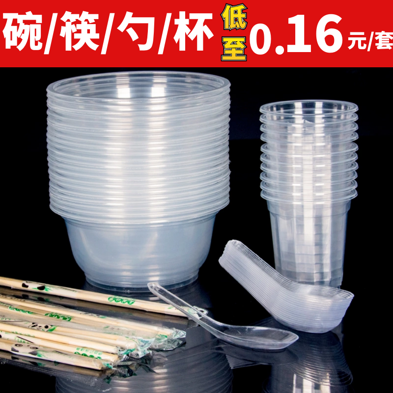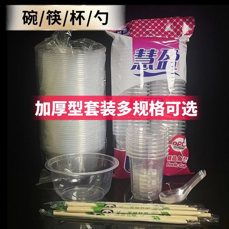 一次性碗筷套装批发加厚圆形带盖塑料碗酒席家用聚会外卖打包餐盒