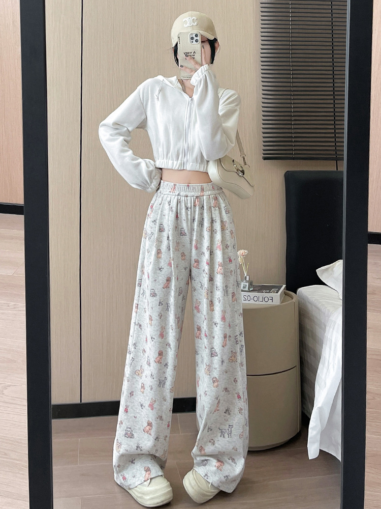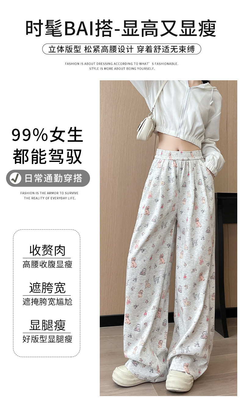 华棉小狗阔腿裤25年春秋新款高腰显瘦休闲遛弯裤窄版直筒山本裤子