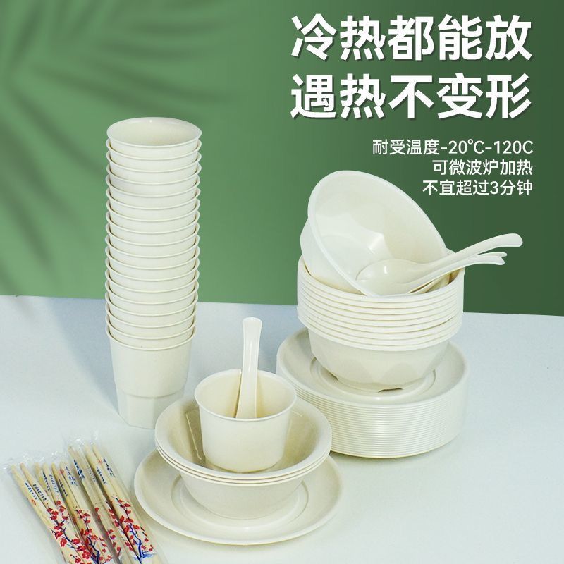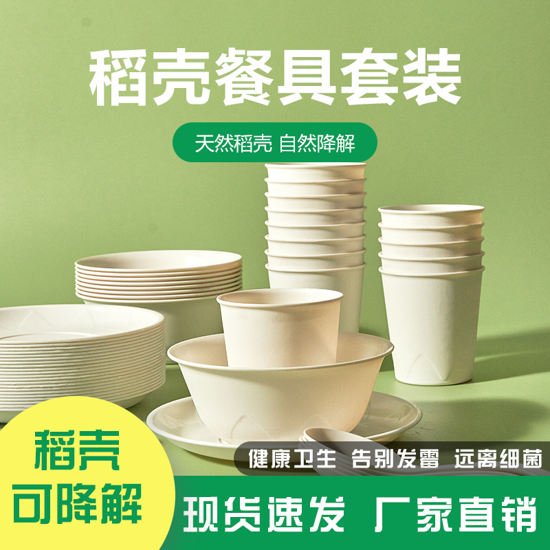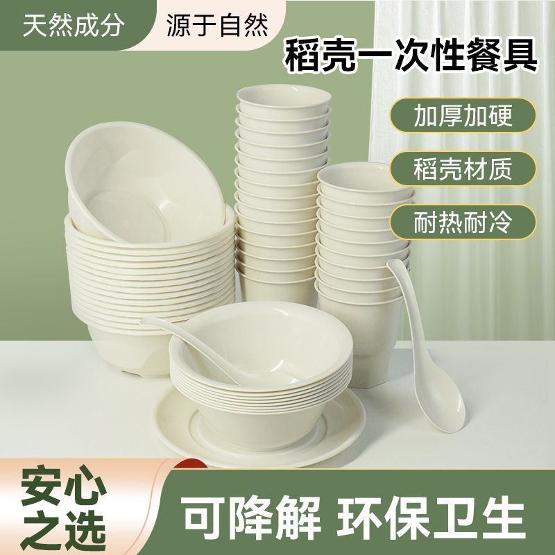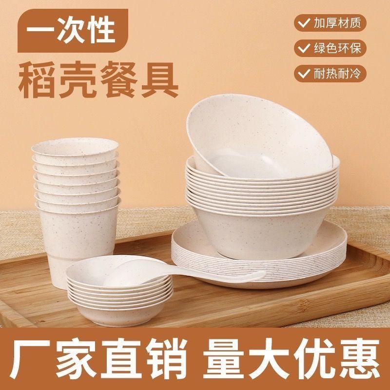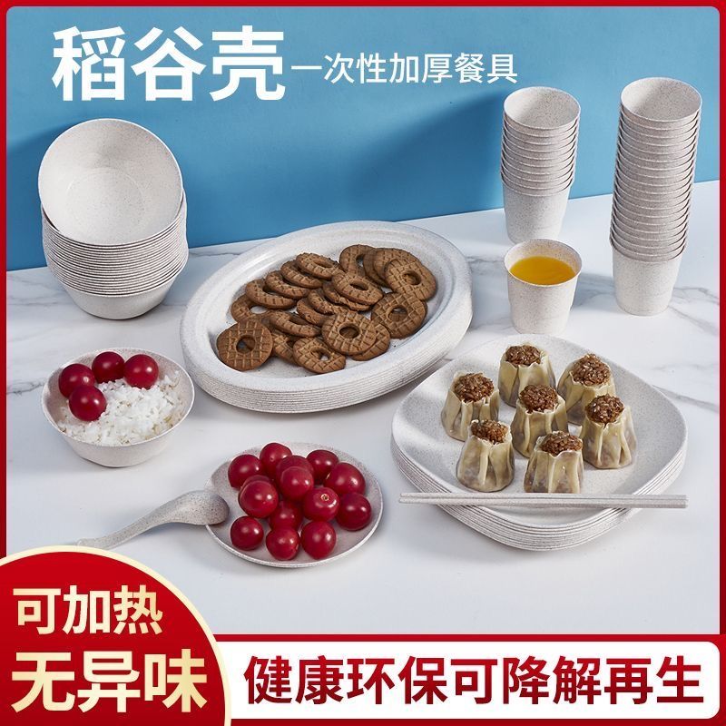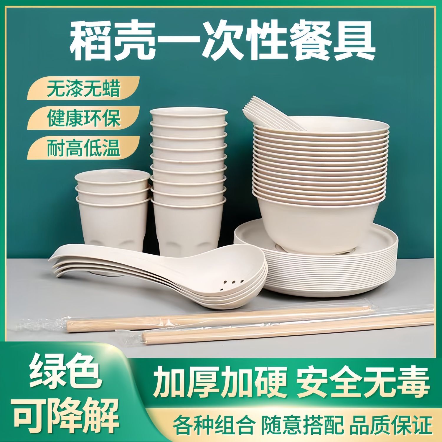 一次性稻壳餐具组合加厚耐高温一次性餐具户外露营火锅碗
