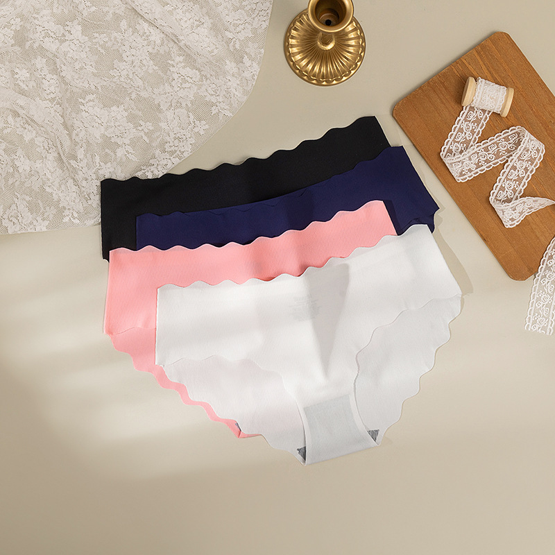 跨境时尚波浪边内裤女螺纹冰丝无痕女士三角裤透气舒适不勒腿热销
