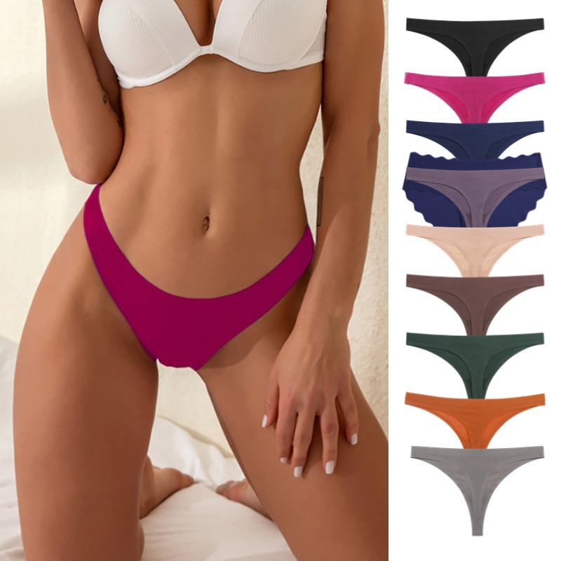 时尚冰丝无痕丁字裤女纯色珠光布料女士内裤透气舒适性感T裤欧美