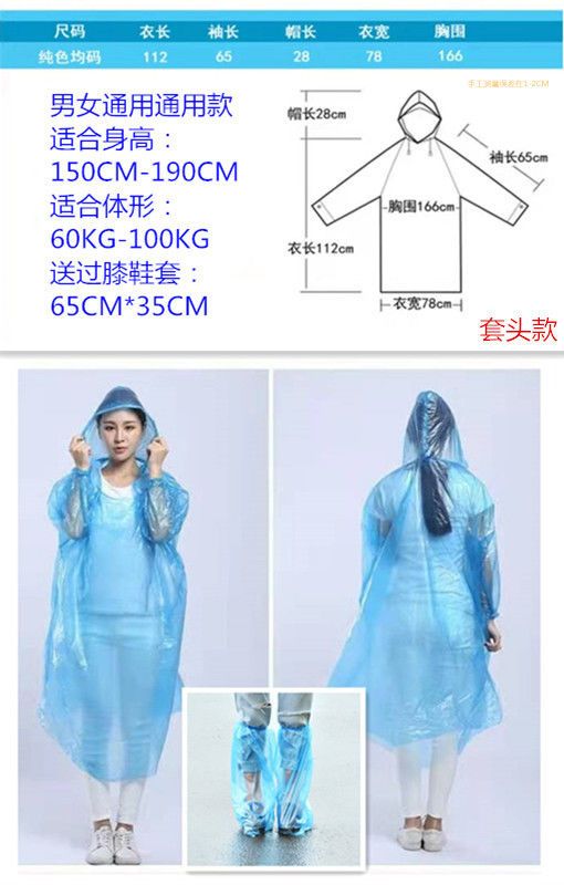 一次性pe雨衣加厚成人便携式防水批发户外徒步连体防护雨披通用款