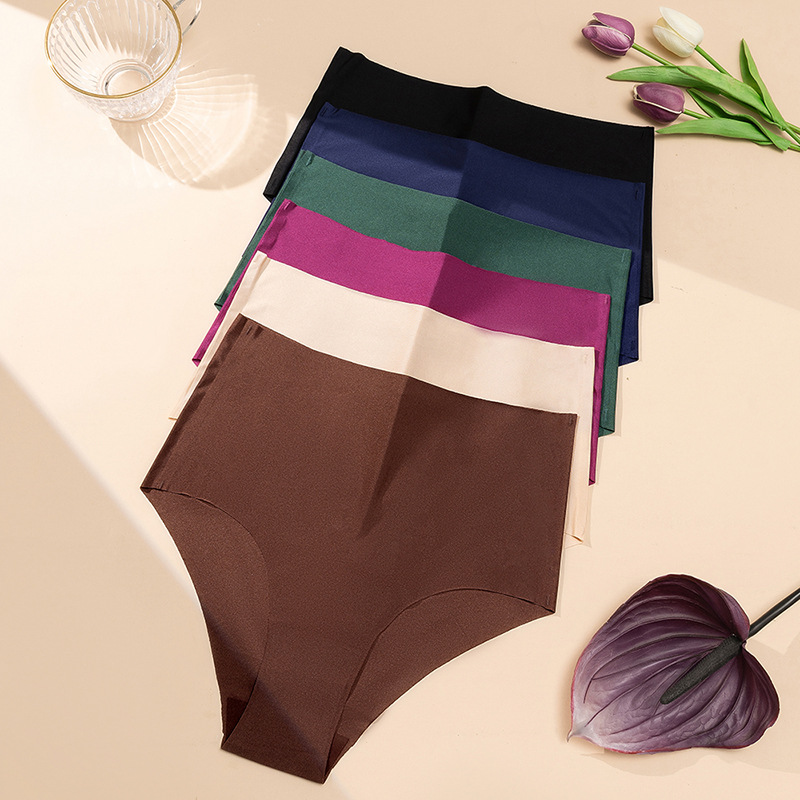 高腰冰丝无痕内裤女时尚舒适三角裤珠光透气面料女士大码裤头HOT