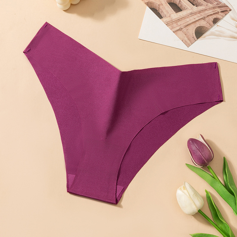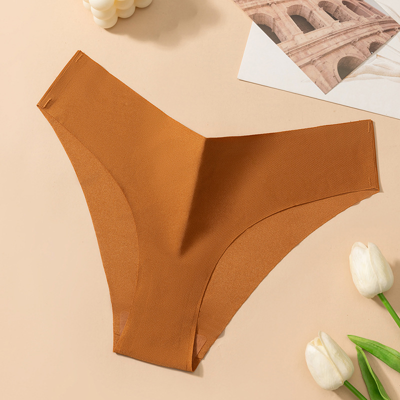 热销冰丝无痕内裤女时尚V剪裁三角裤珠光透气面料女士大码裤头HOT