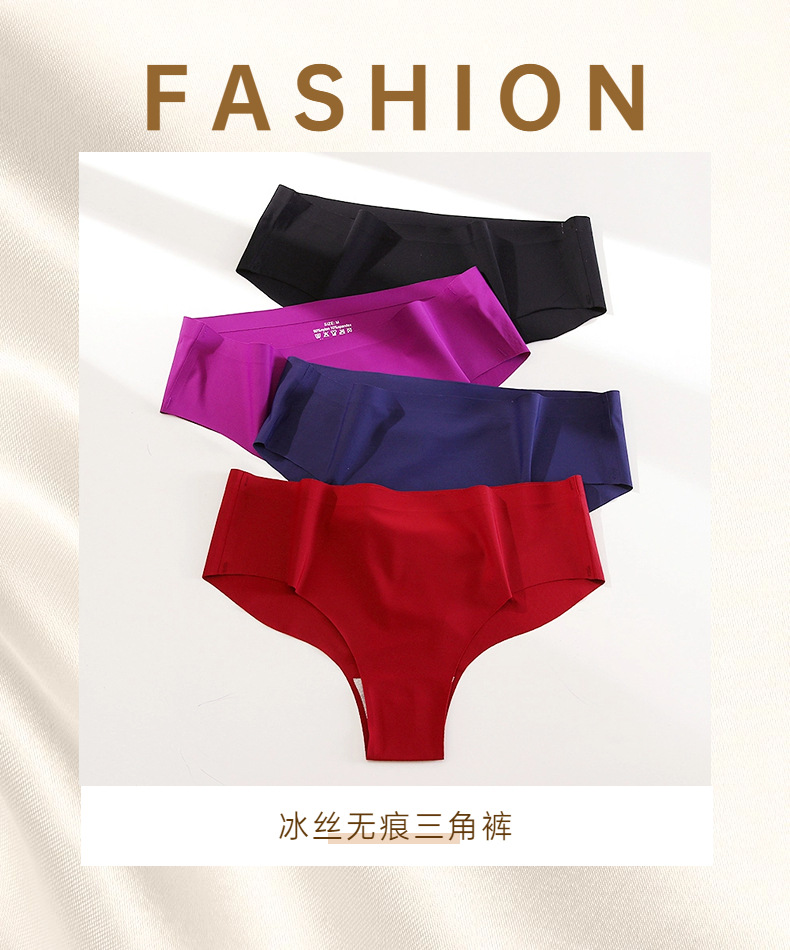 跨境冰丝无痕内裤女时尚版型女士丁字裤运动舒适2XL裤头欧美爆款