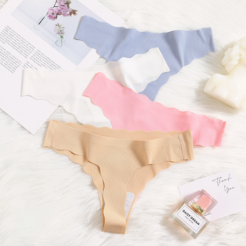 跨境欧码冰丝螺纹丁字裤无痕内裤女高弹柔软透气舒适女士性感T裤