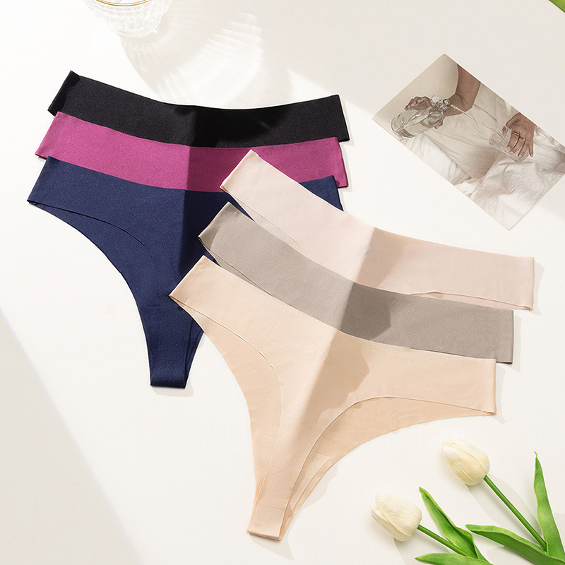 珠光V剪裁无痕丁字裤时尚冰丝内裤女2XL裤头柔软舒适性感T裤外贸