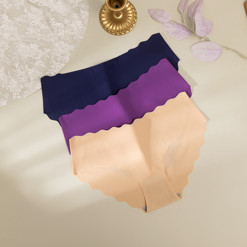 时尚波浪边内裤女螺纹冰丝无痕女士三角裤舒适不勒腿透气裤头热销