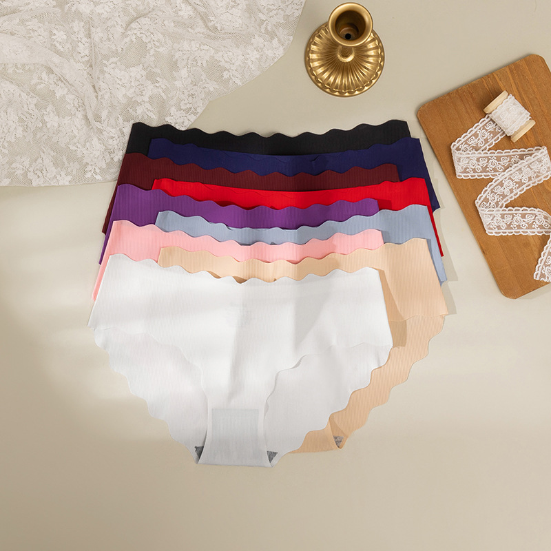 跨境时尚波浪边内裤女螺纹冰丝无痕女士三角裤透气舒适不勒腿热销
