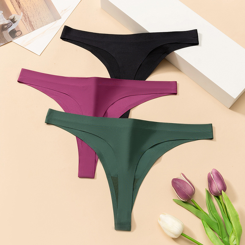 冰丝无痕丁字裤女纯色珠光轻奢款女士内裤透气舒适性感T裤9色热卖