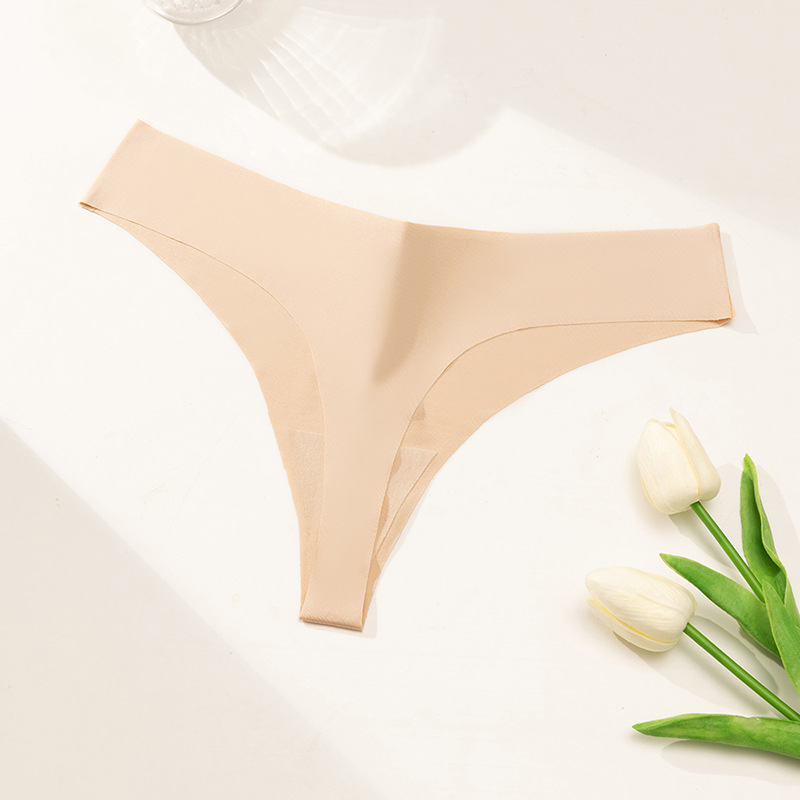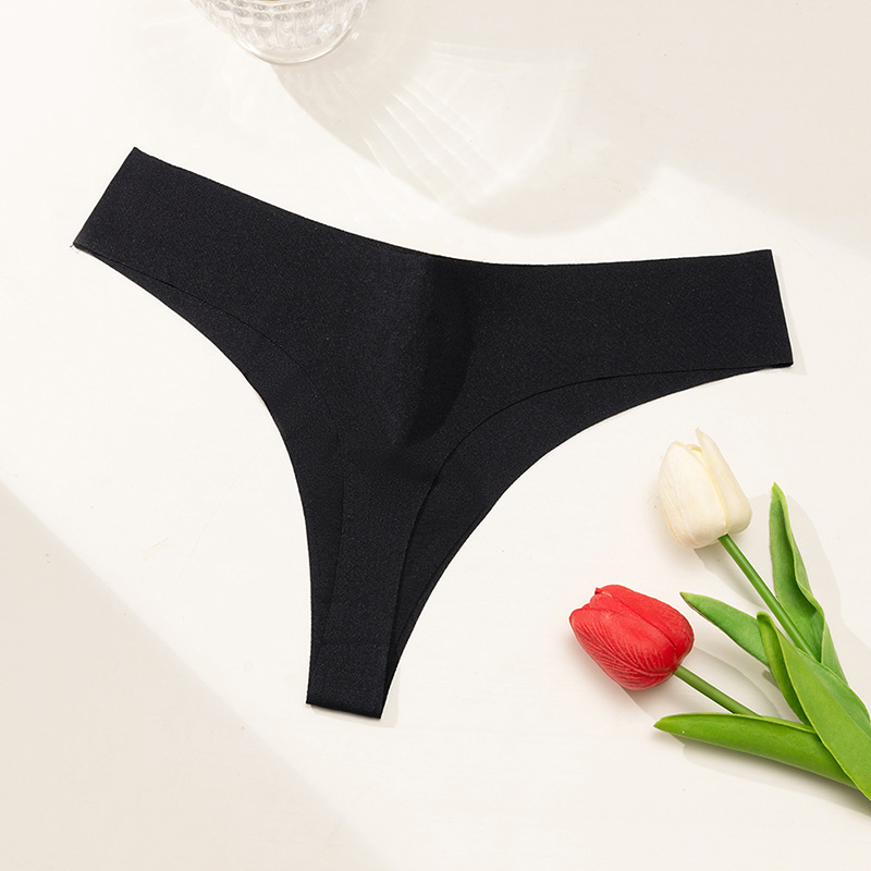 外贸冰丝无痕丁字裤珠光V剪裁时尚内裤女大码裤头柔软舒适性感T裤