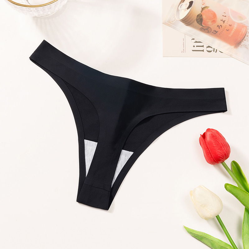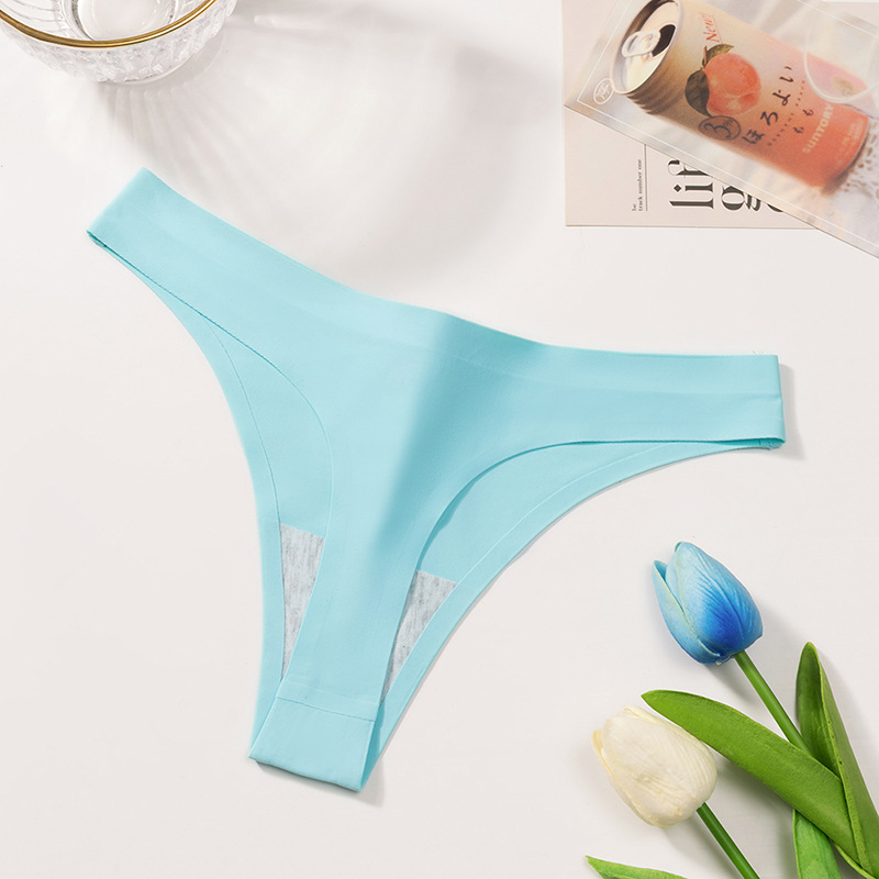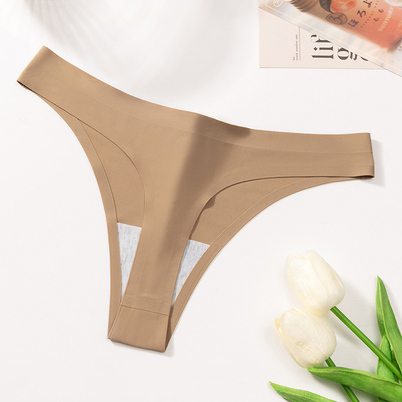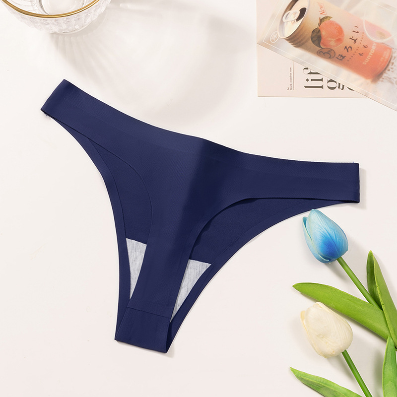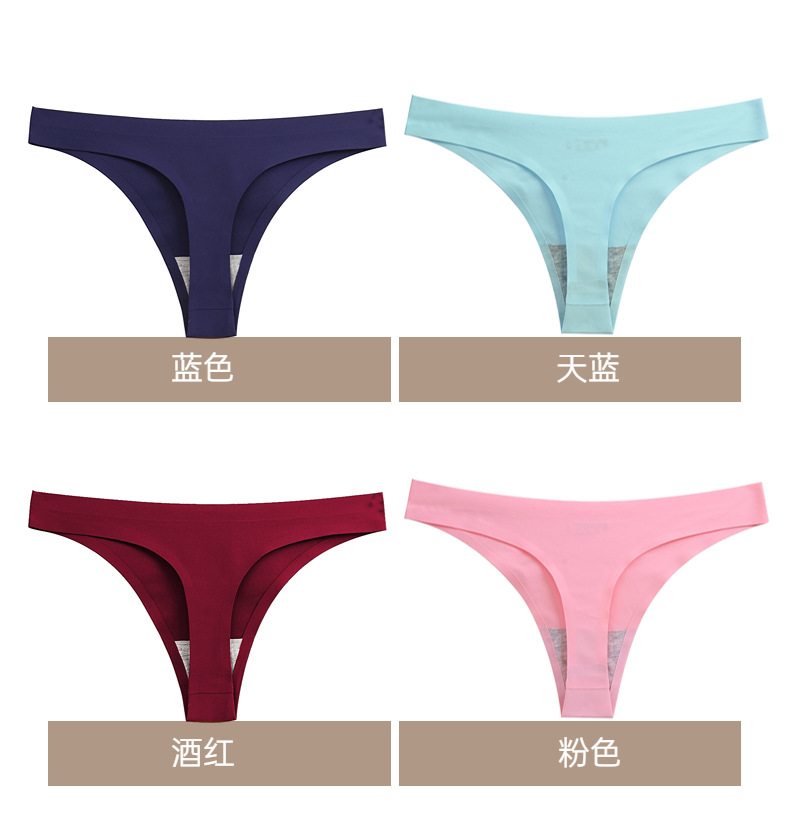 外贸纯色简约丁字裤女冰丝无痕内裤女士Sport低腰性感T裤舒适裤头