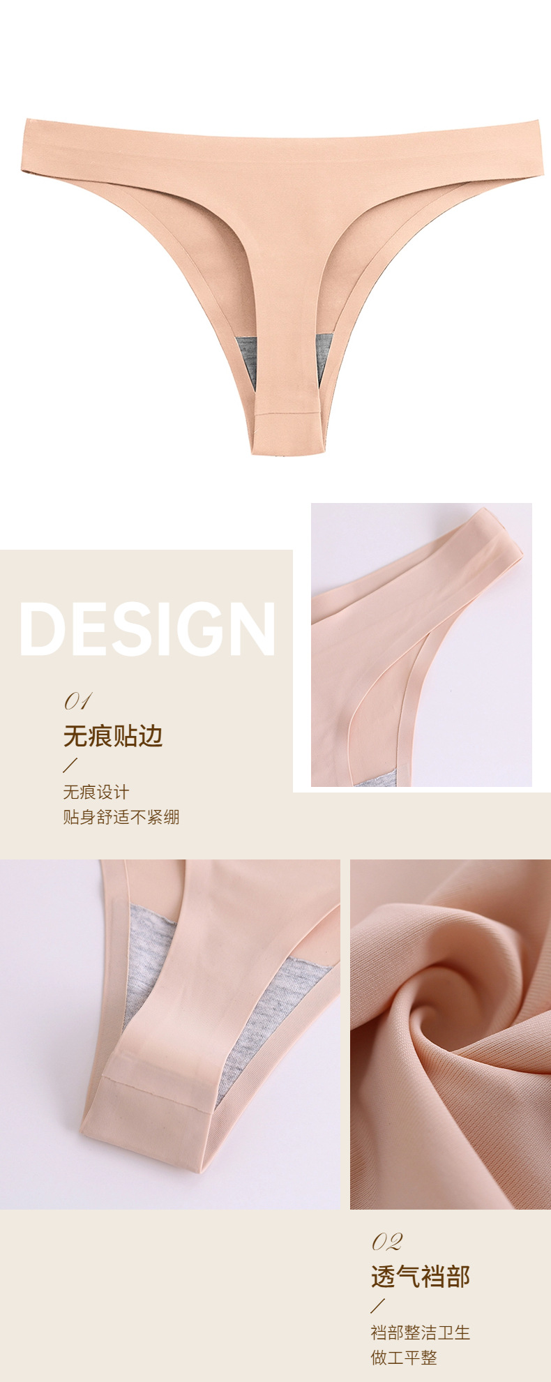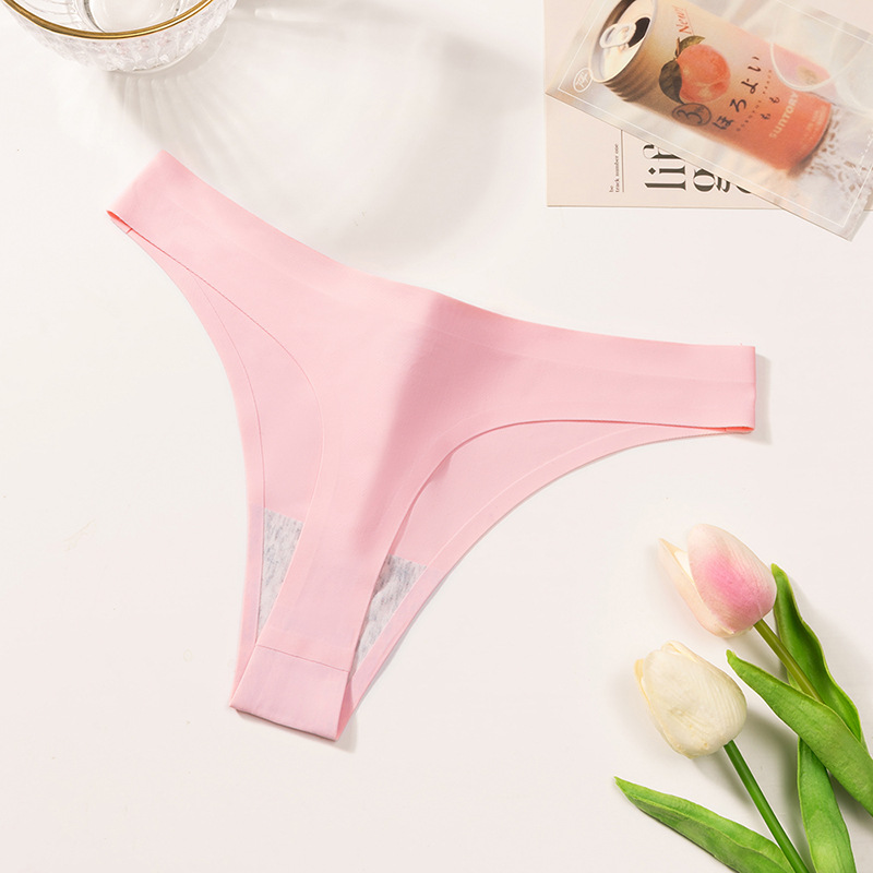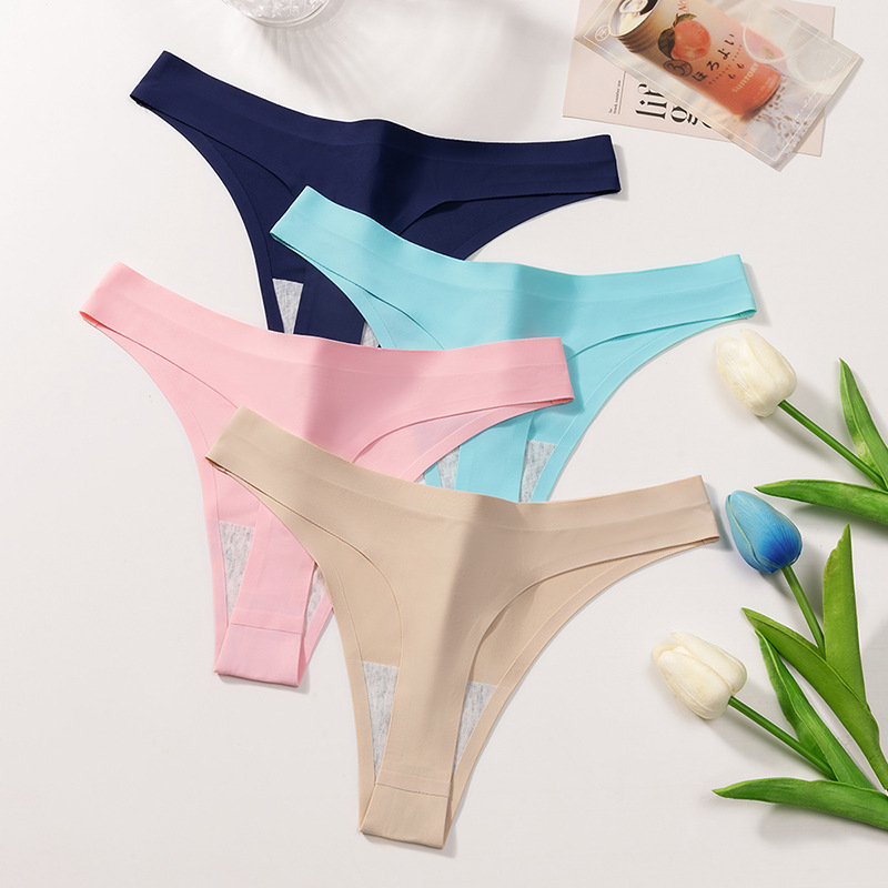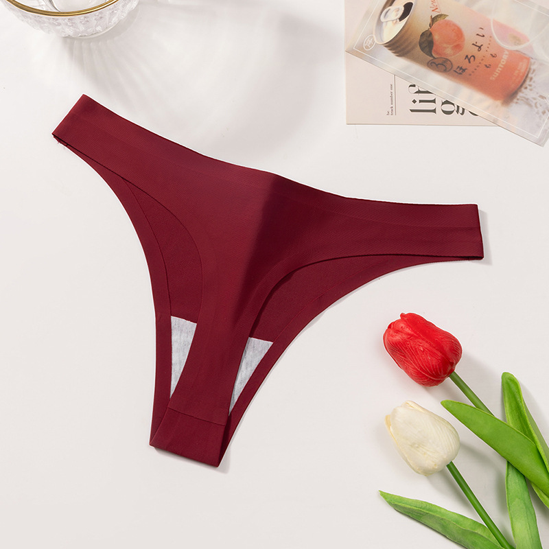 外贸纯色简约丁字裤女冰丝无痕内裤女士Sport低腰性感T裤舒适裤头