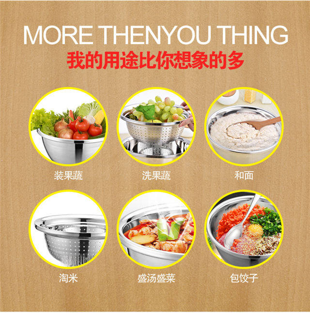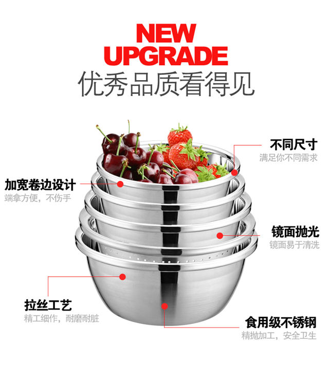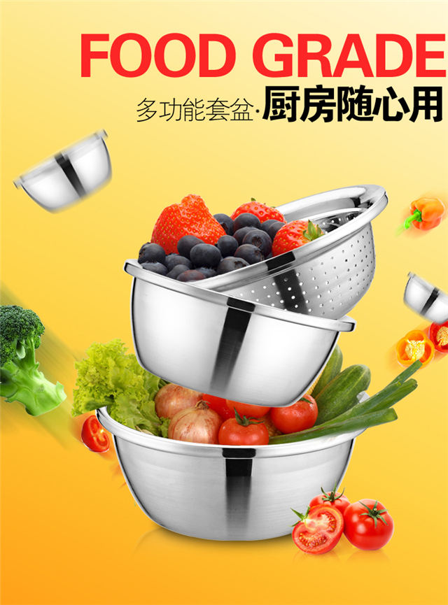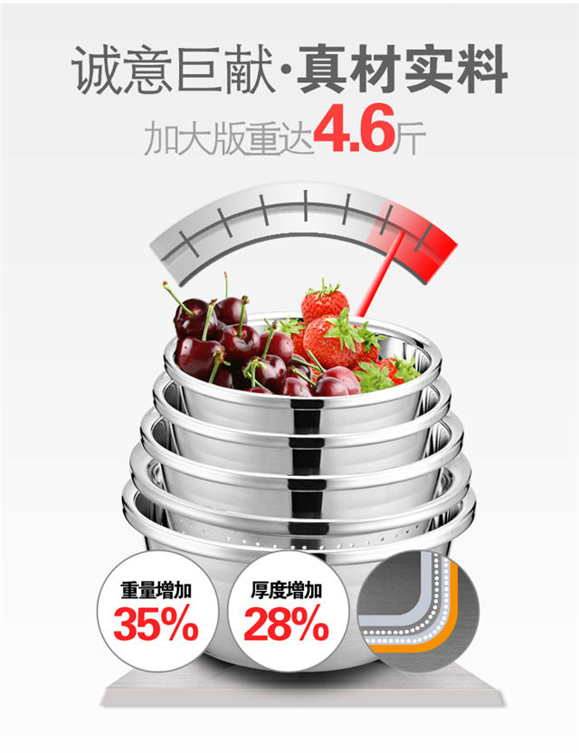 304不锈钢盆套装圆形味斗家用料理盆汤盆水果盆淘米盆和面洗菜盆