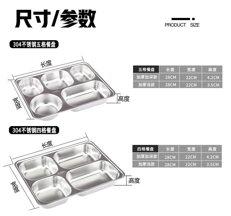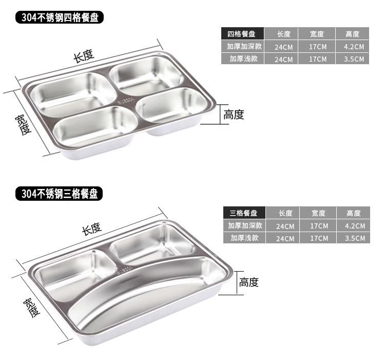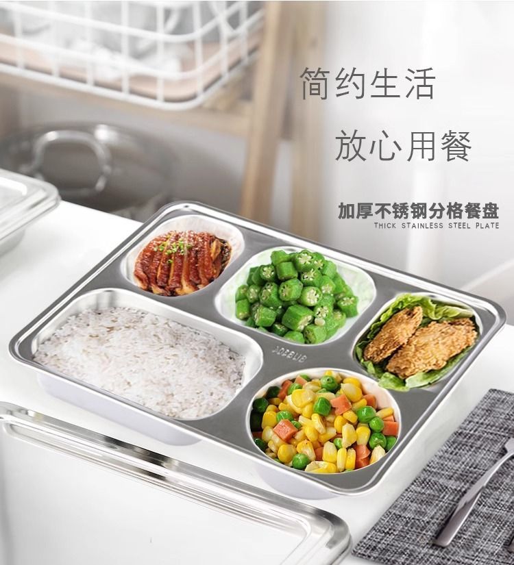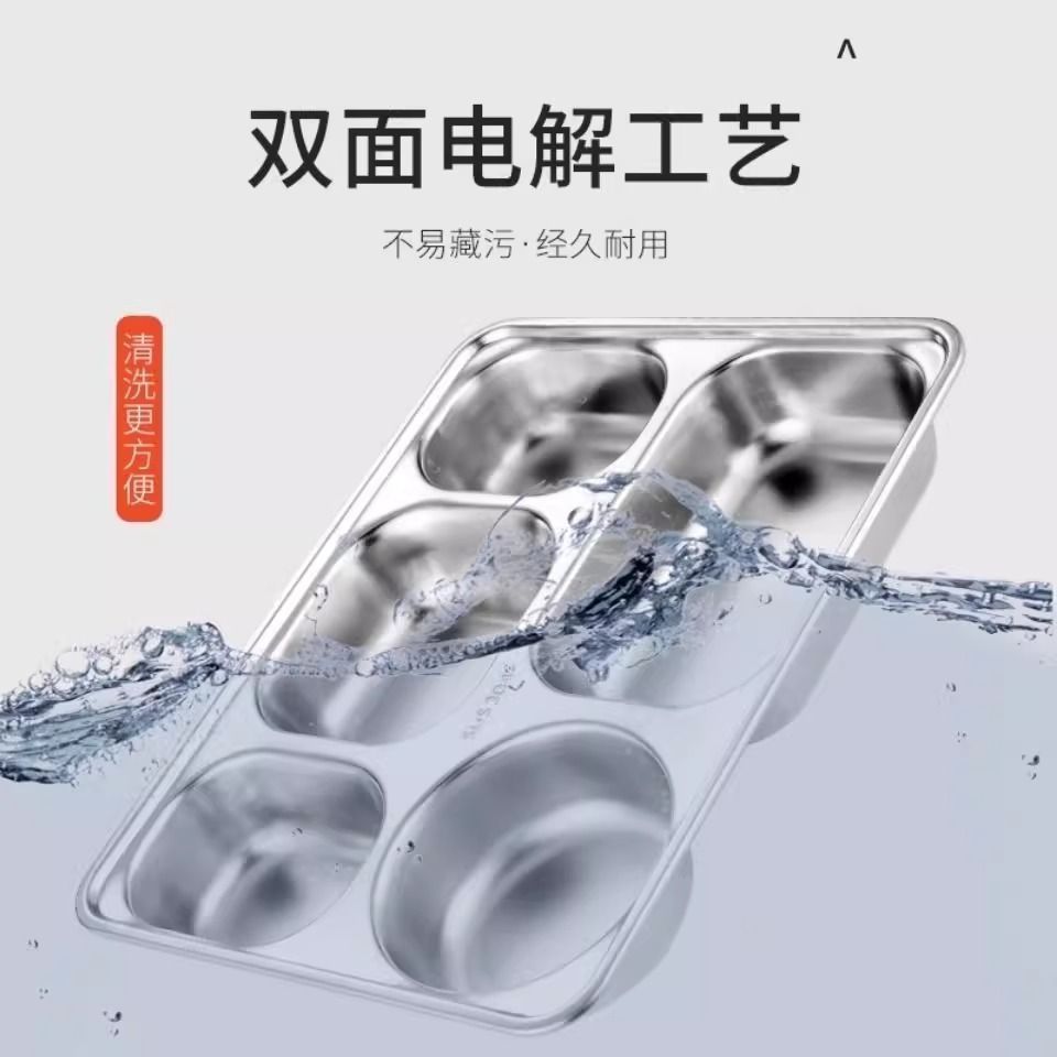 304不锈钢快餐盘分格大人家用学生食堂饭盘不锈钢餐盘刻字定制