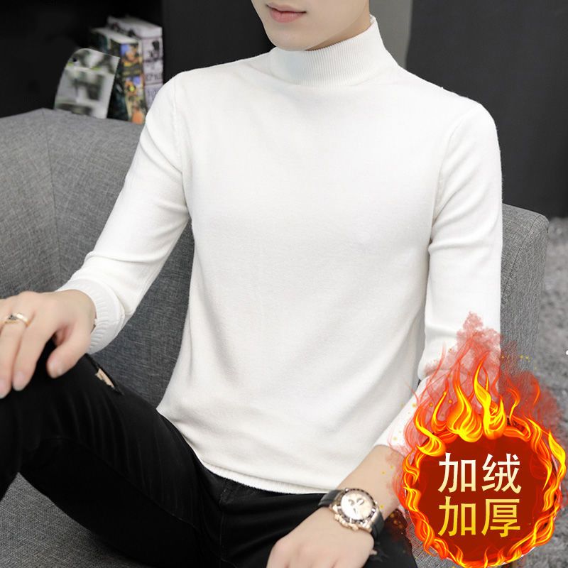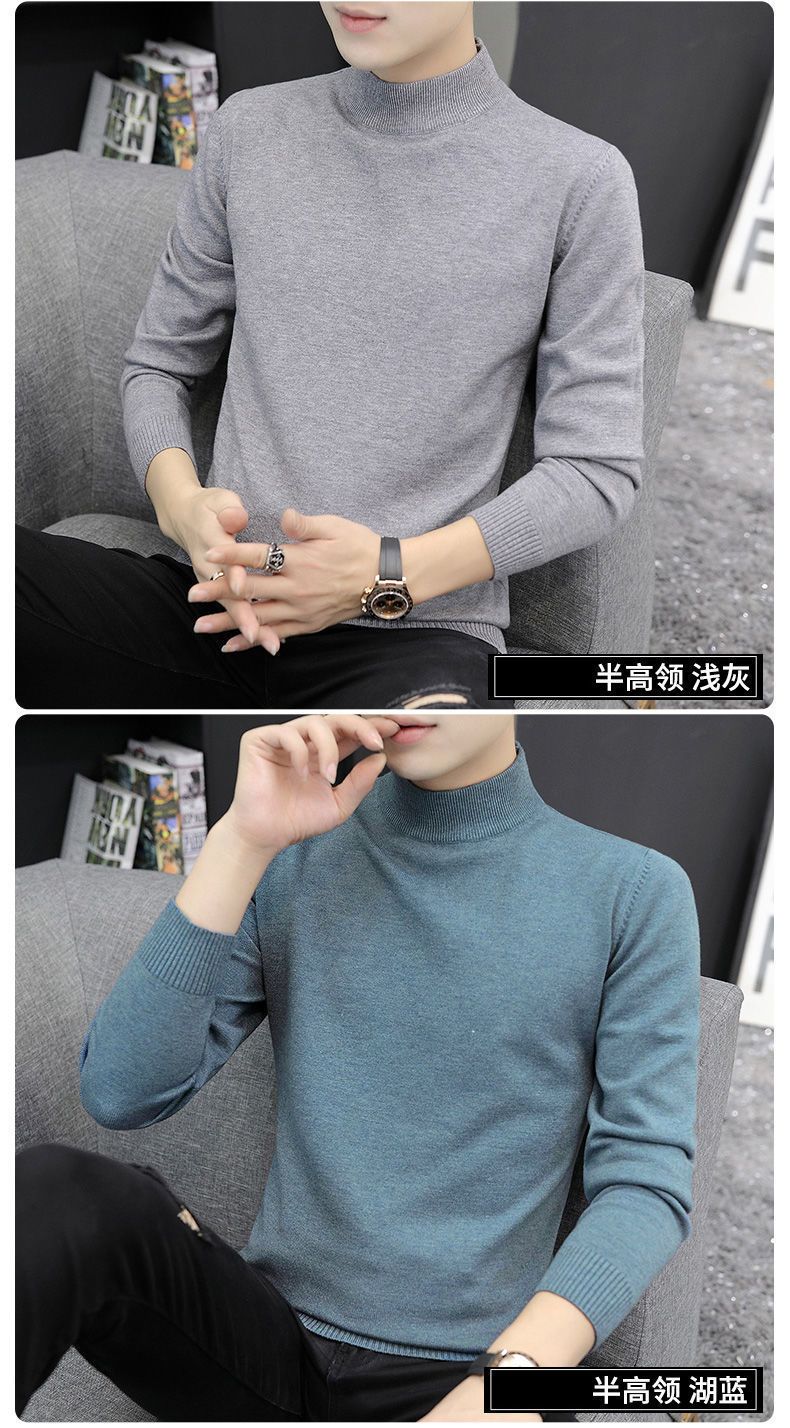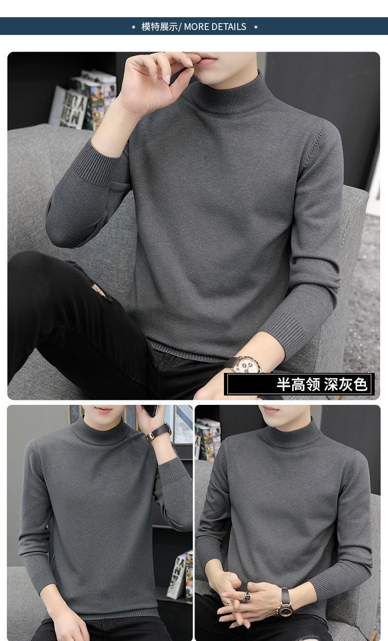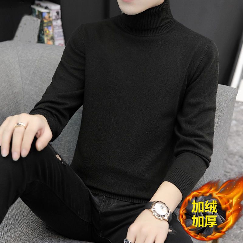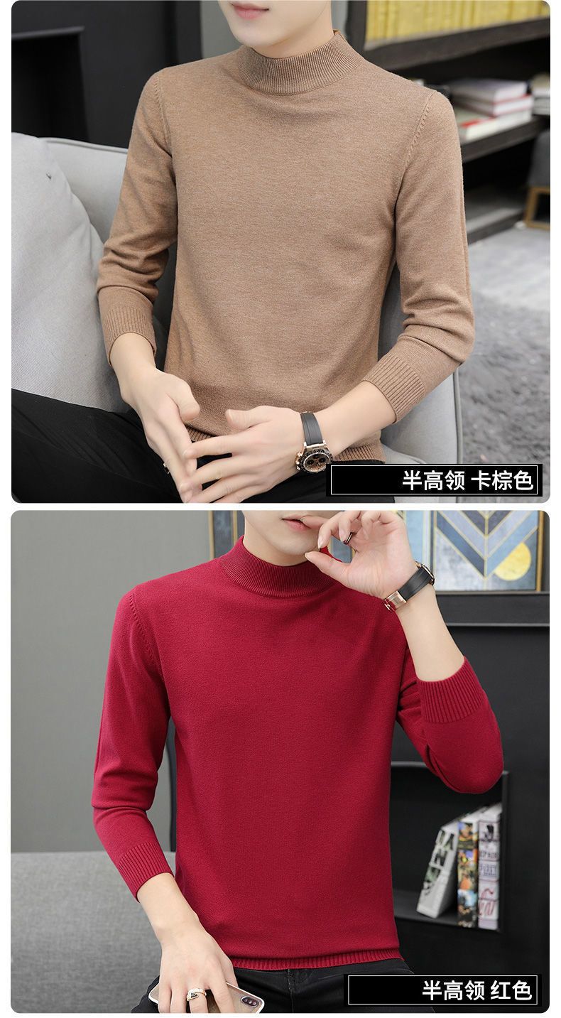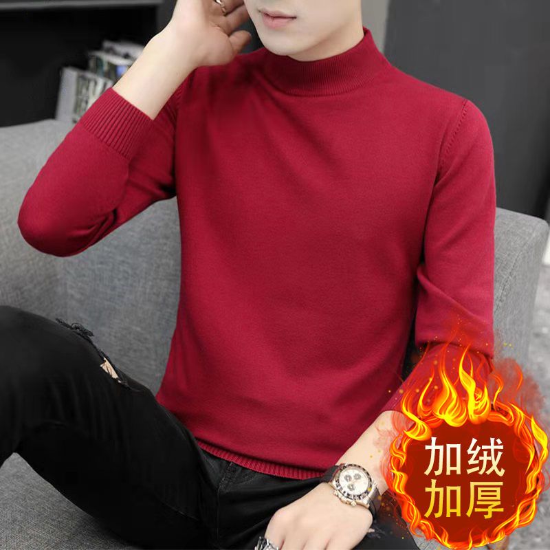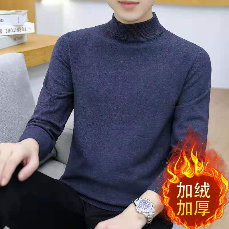 半高领男士毛衣秋冬加绒加厚高领百搭时尚套头打底针织衫修身套头