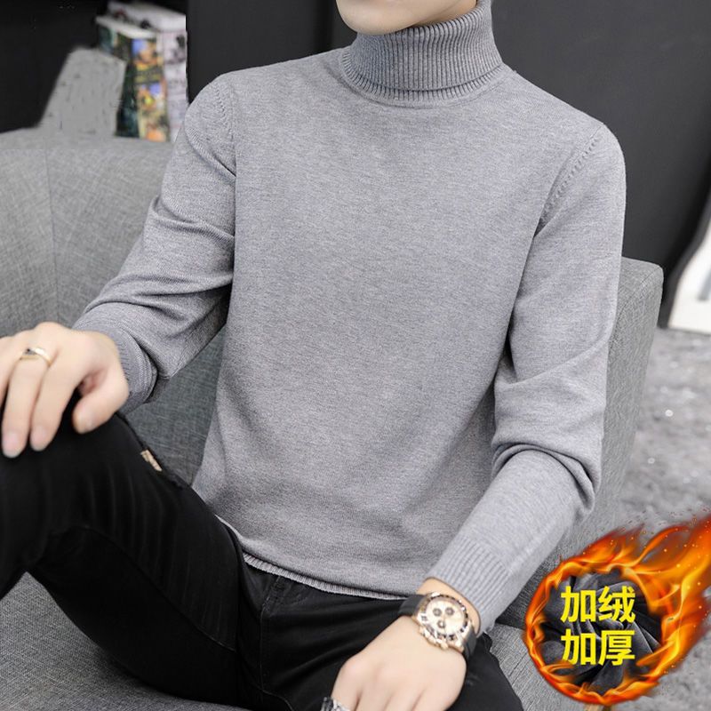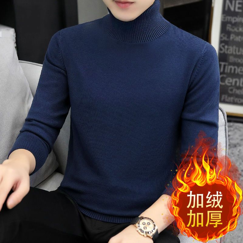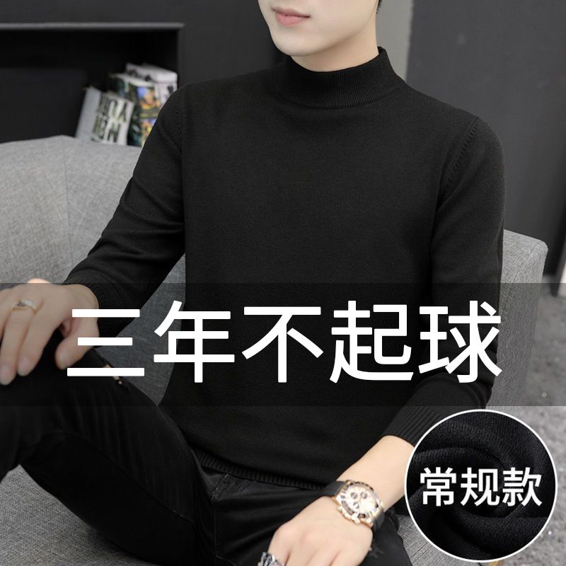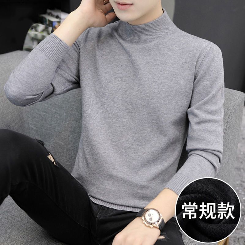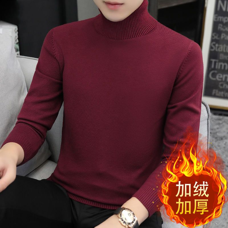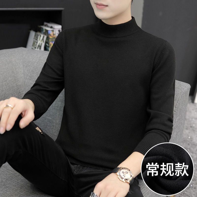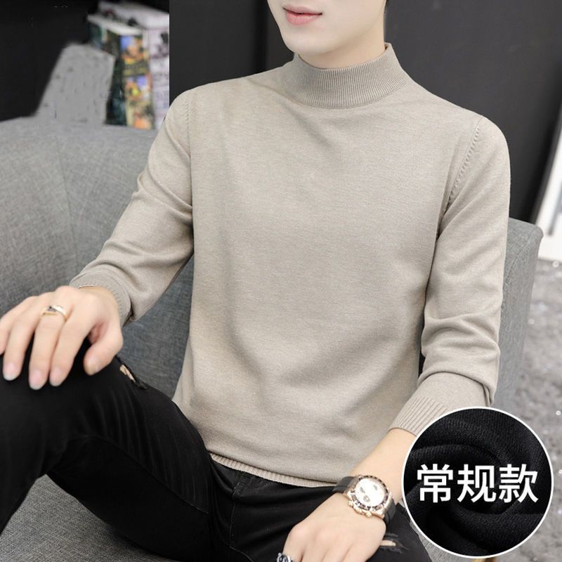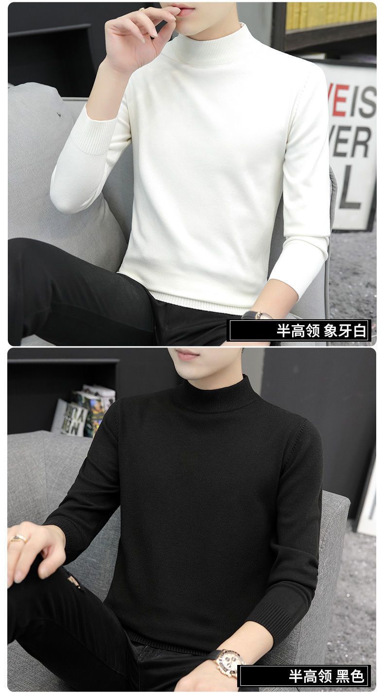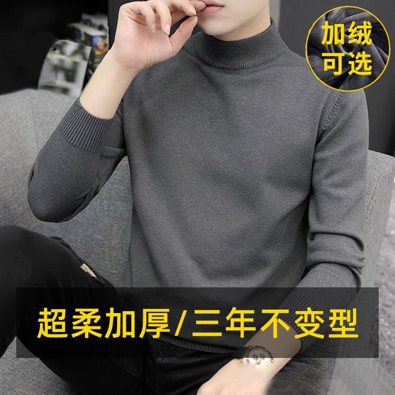 半高领男士毛衣秋冬加绒加厚高领百搭时尚套头打底针织衫修身套头