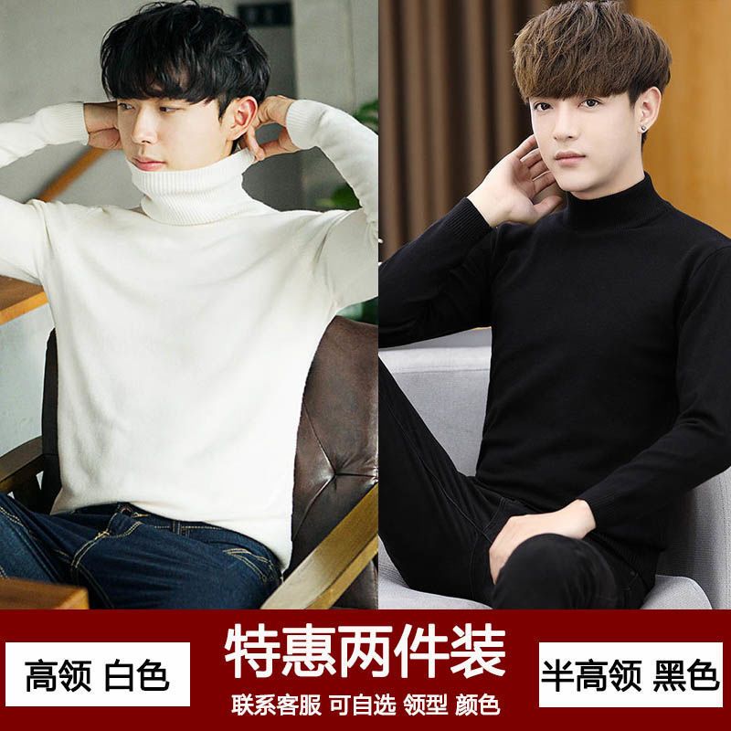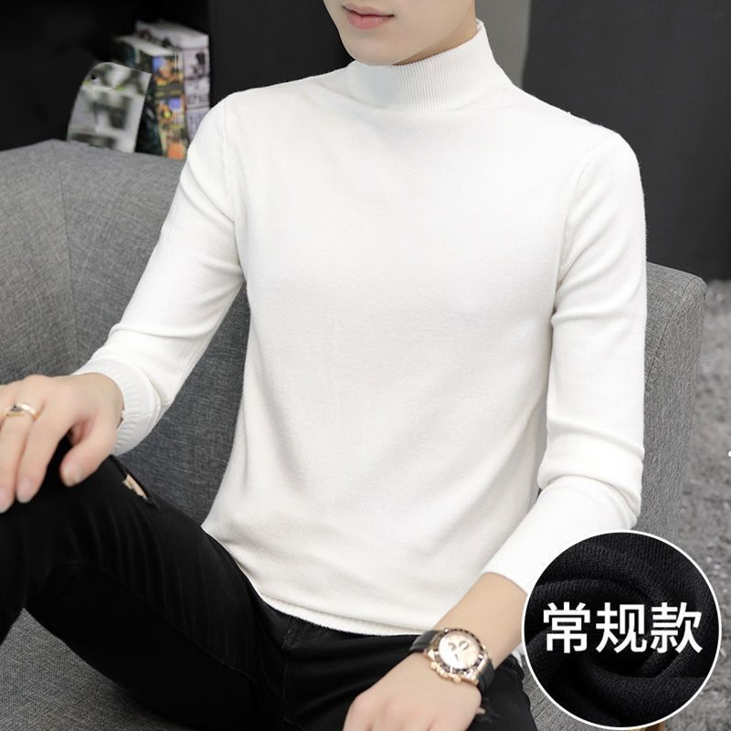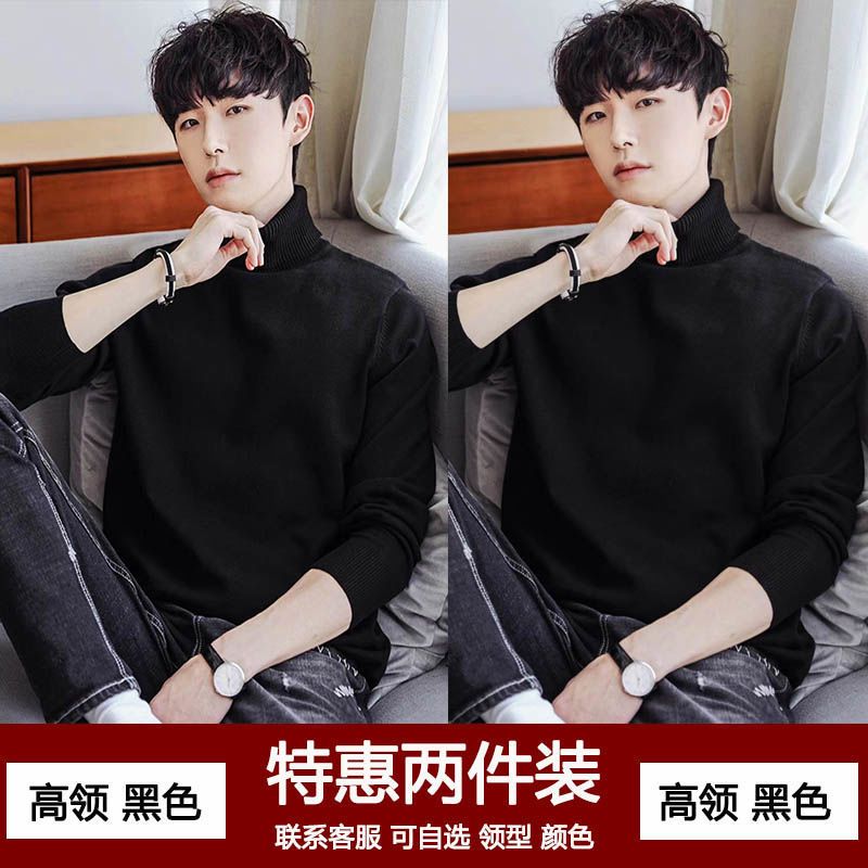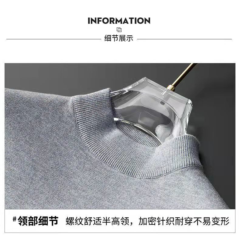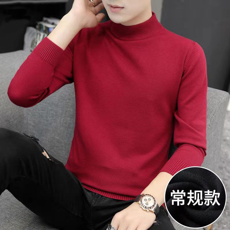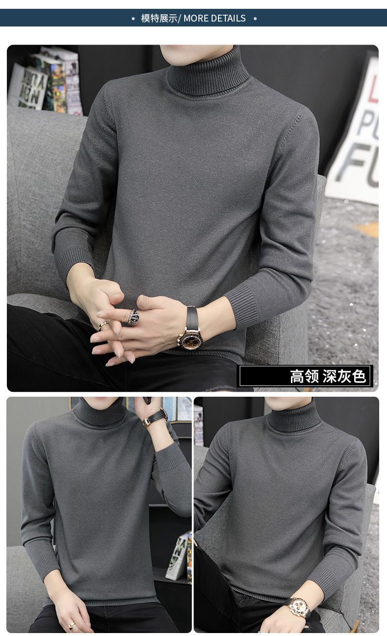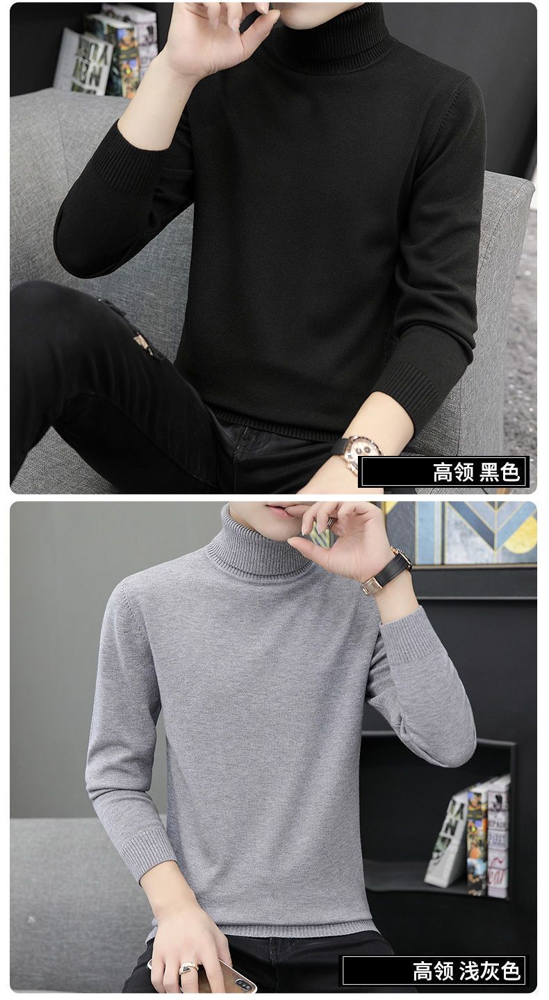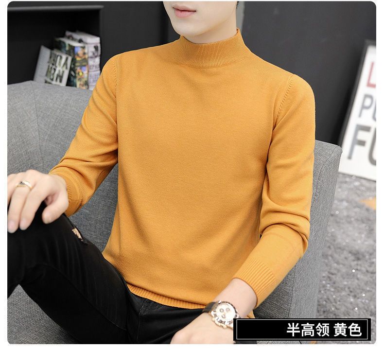 半高领男士毛衣秋冬加绒加厚高领百搭时尚套头打底针织衫修身套头