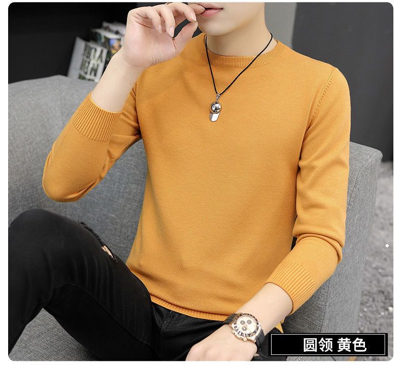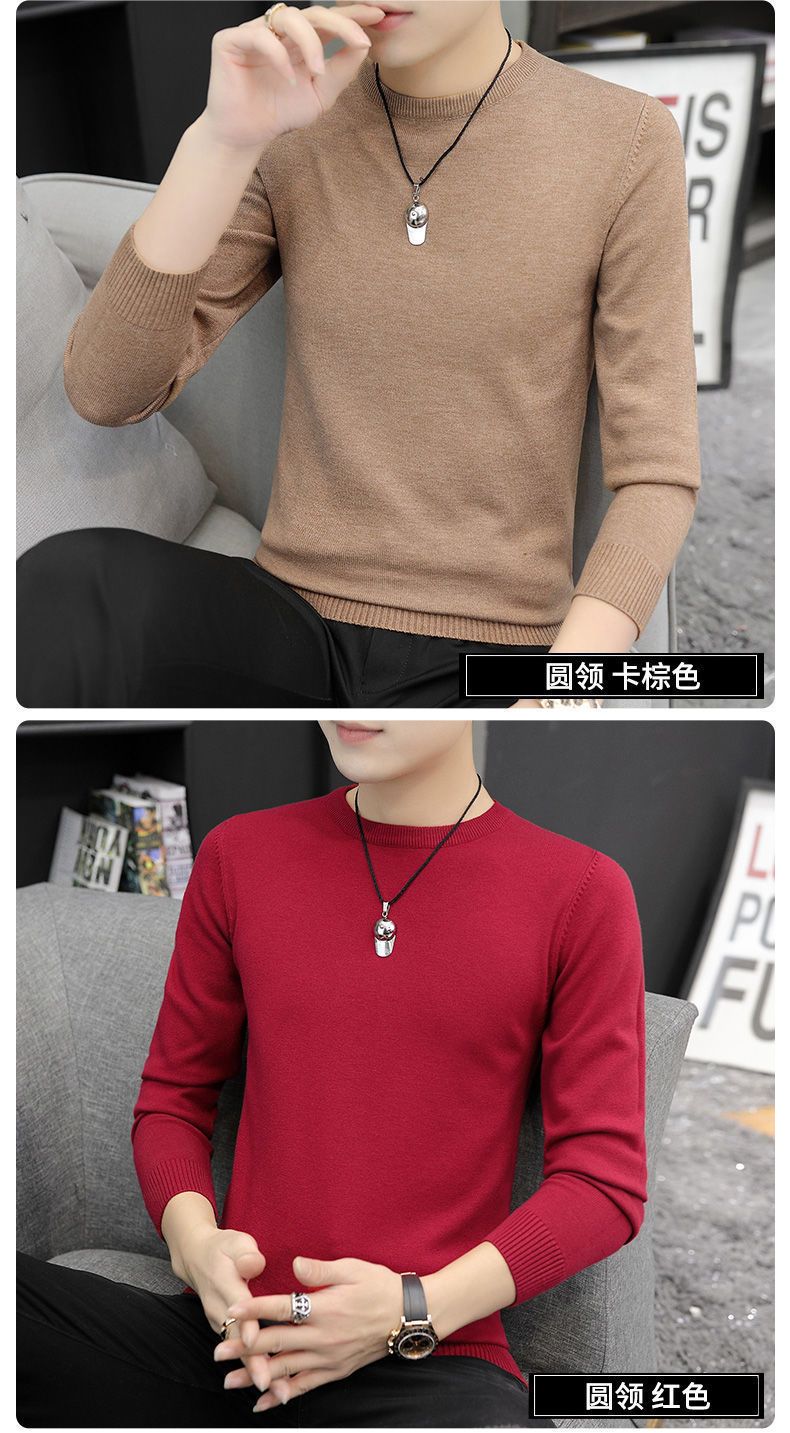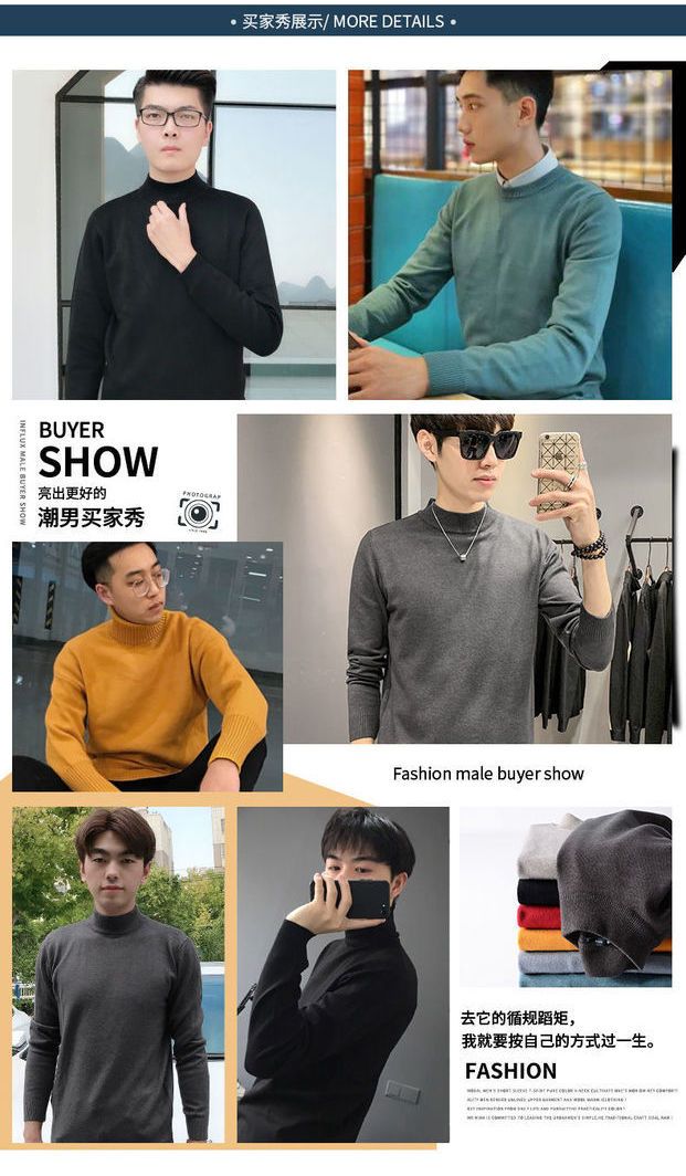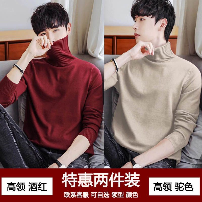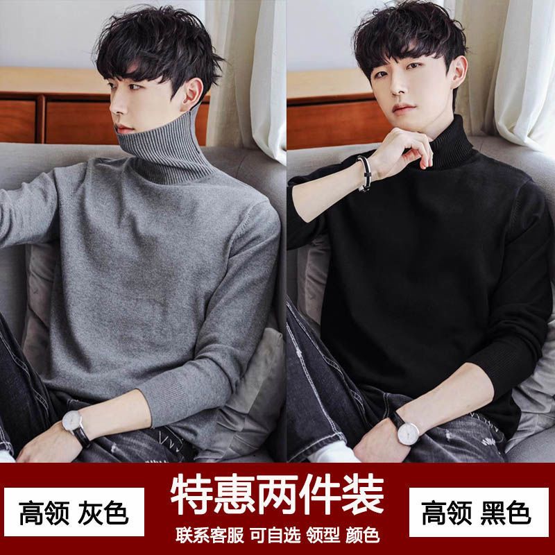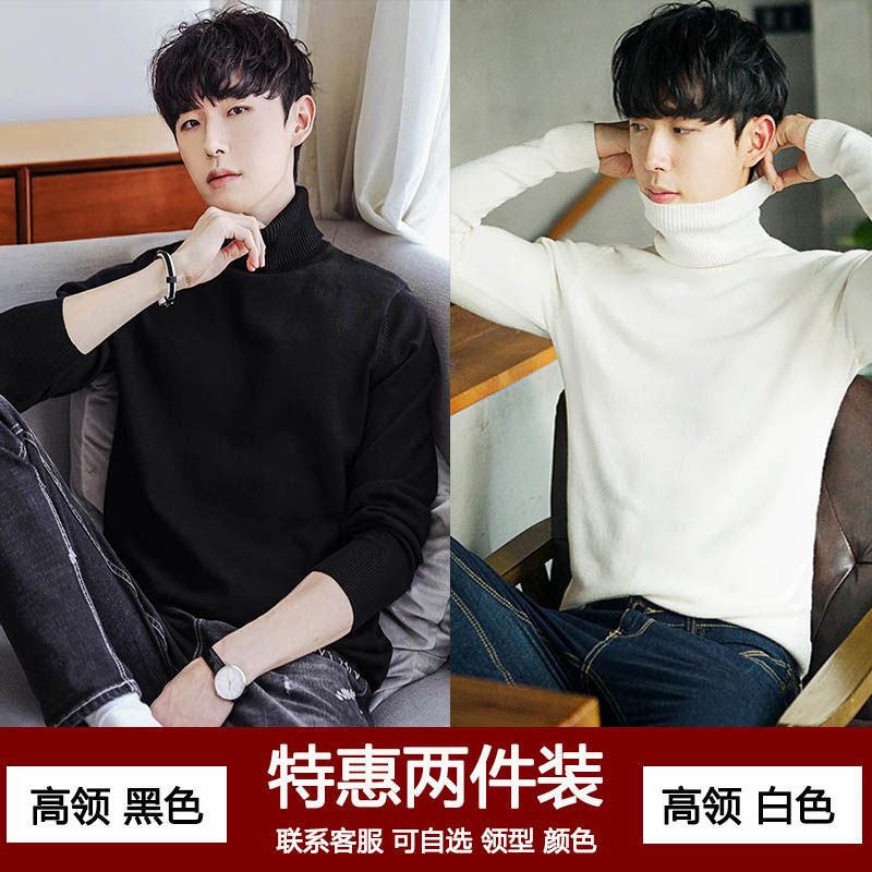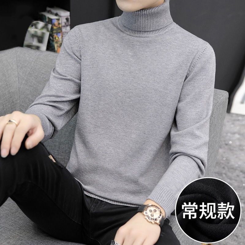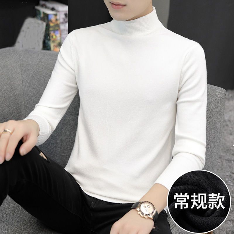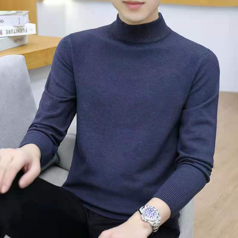 半高领男士毛衣秋冬加绒加厚高领百搭时尚套头打底针织衫修身套头