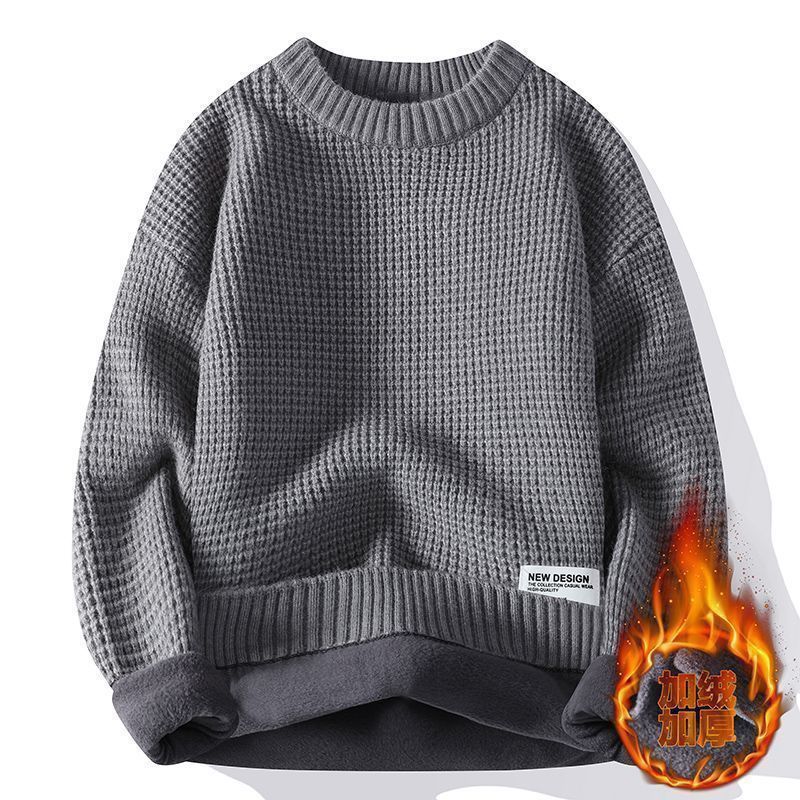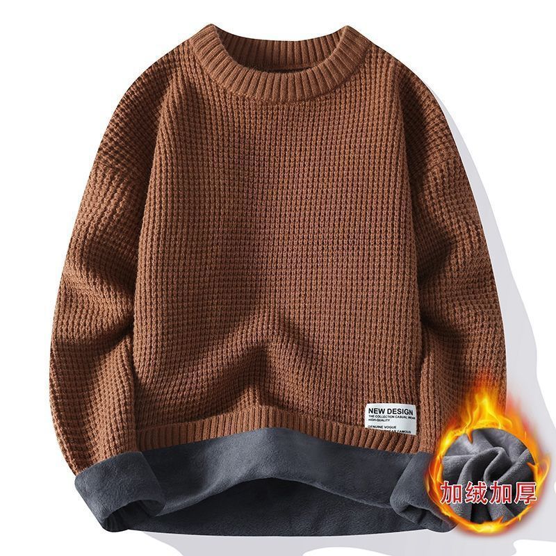 圆领套头毛衣男冬季潮青少年宽松拼色长袖打底针织衫秋装2023新款