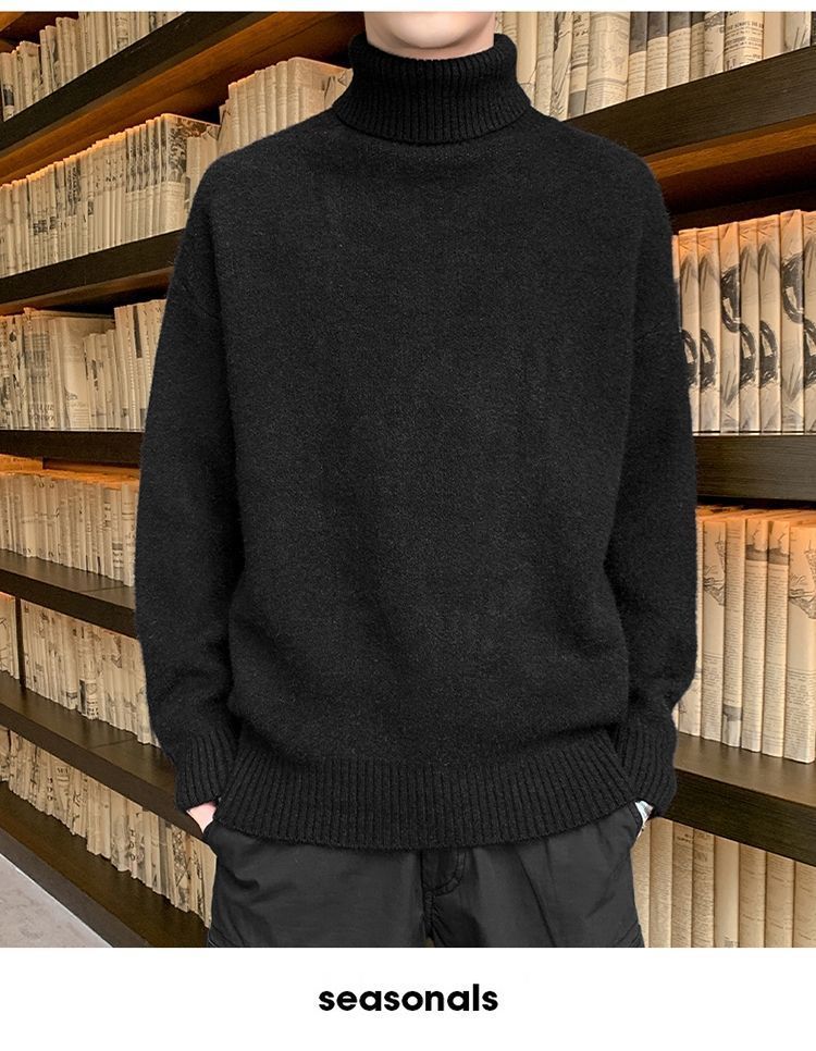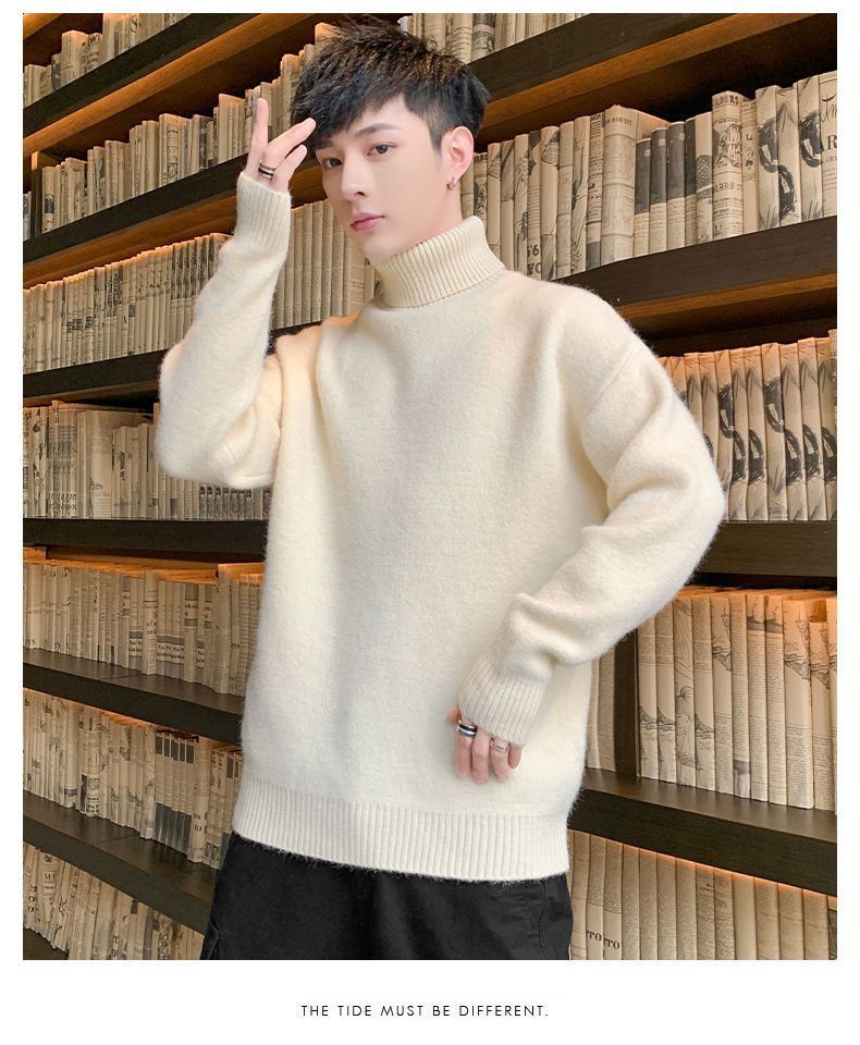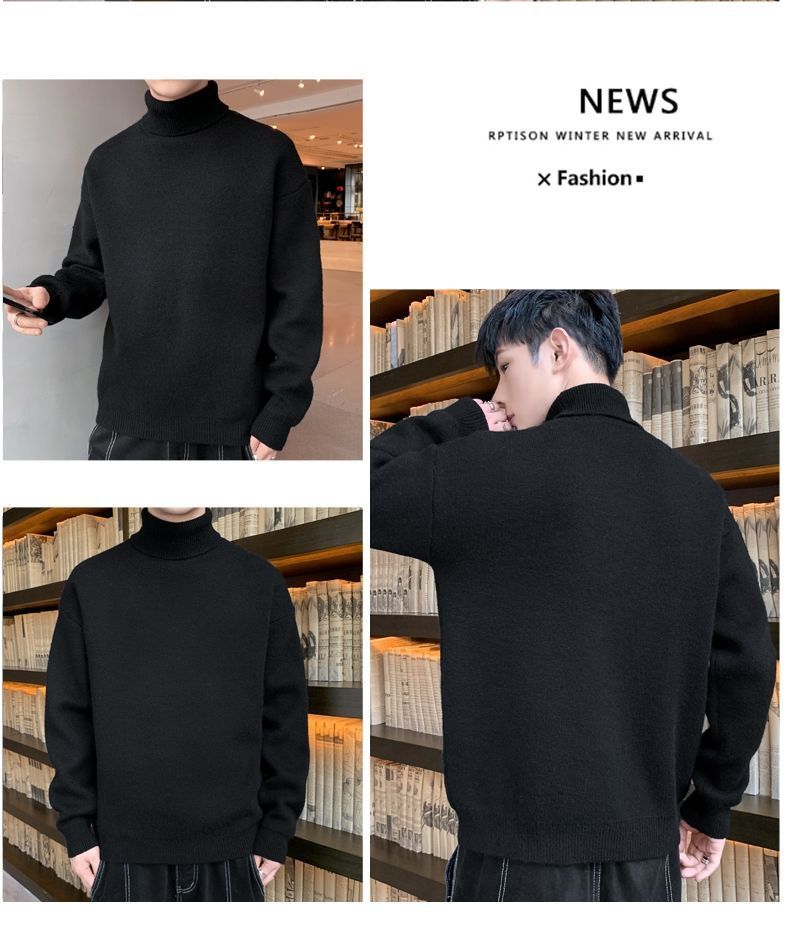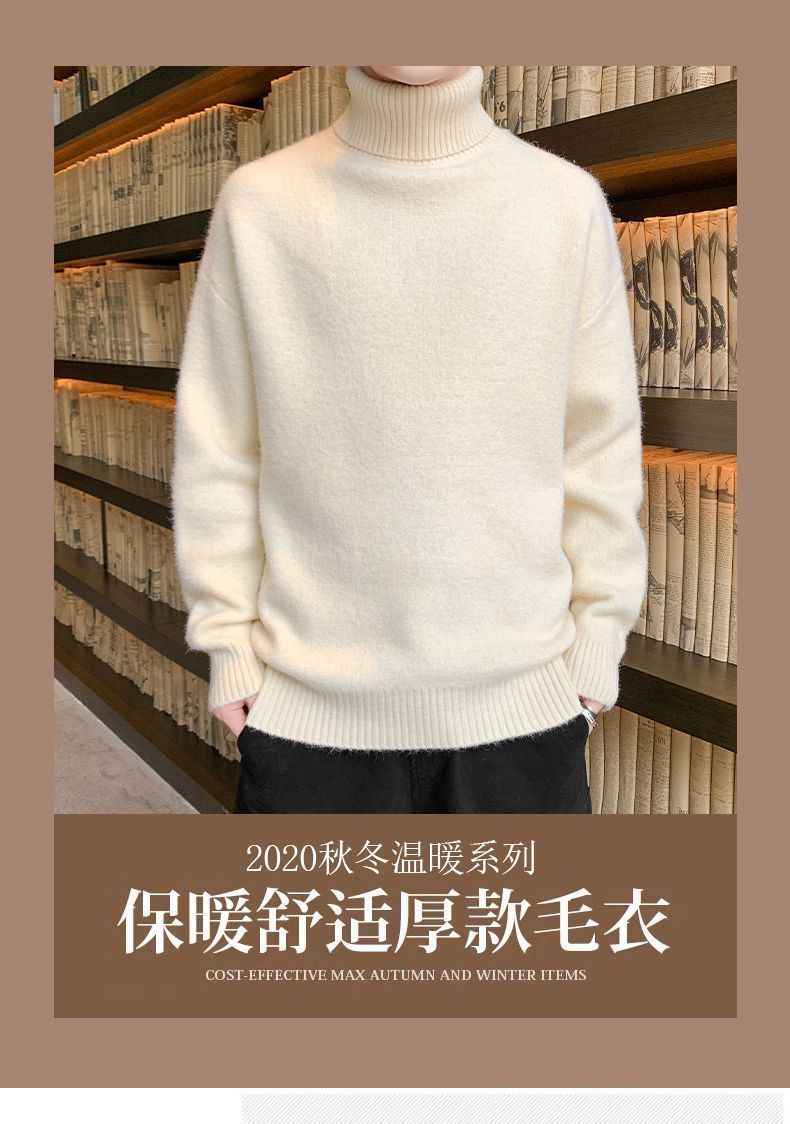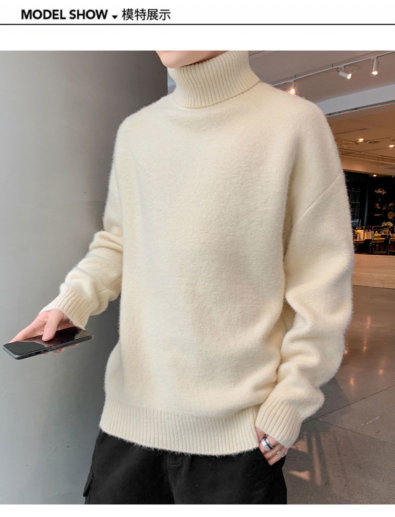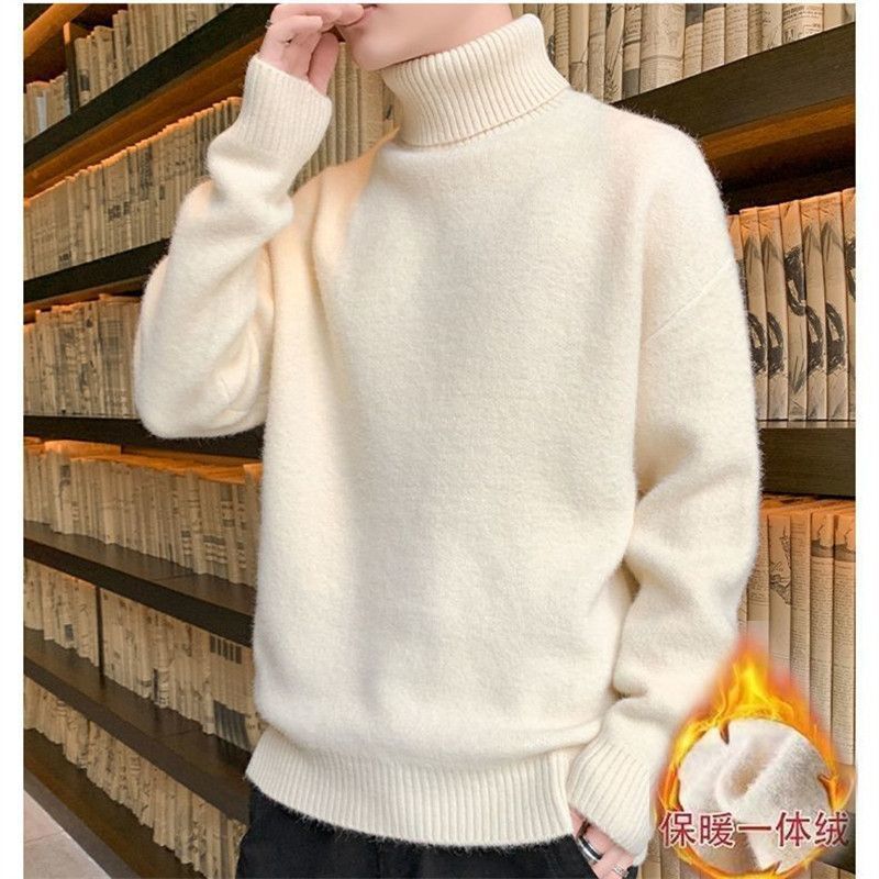 秋冬季加绒男士高领毛衣新款青少年宽松加厚保暖一体绒毛衣男冬季