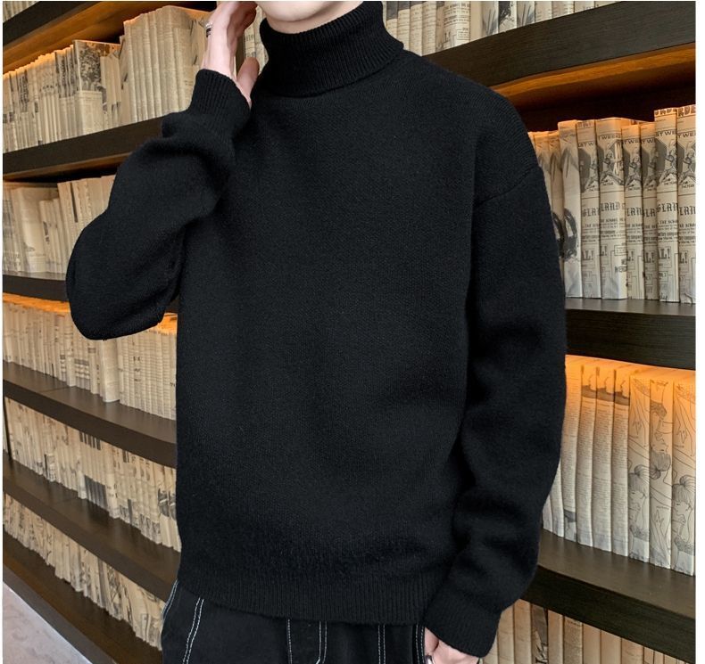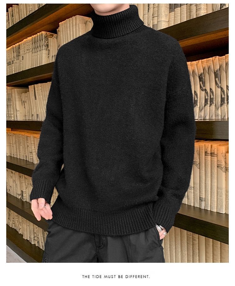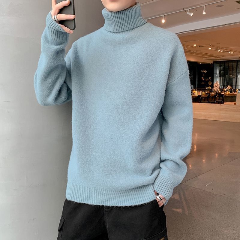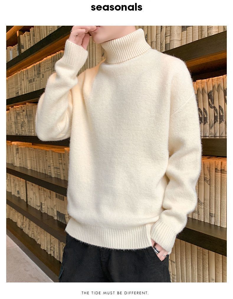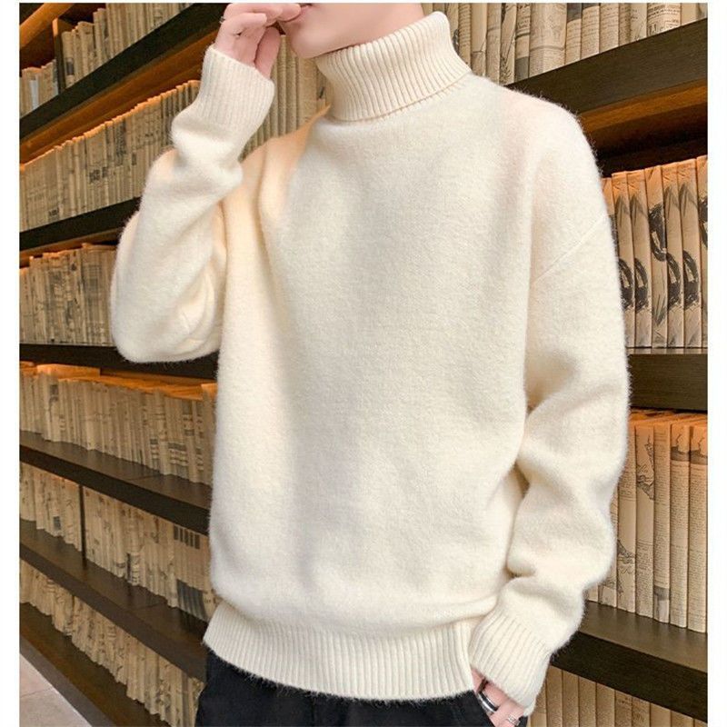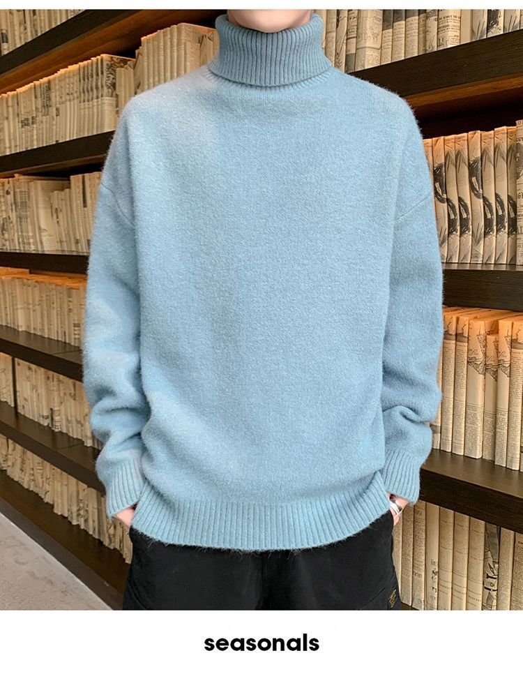 秋冬季加绒男士高领毛衣新款青少年宽松加厚保暖一体绒毛衣男冬季