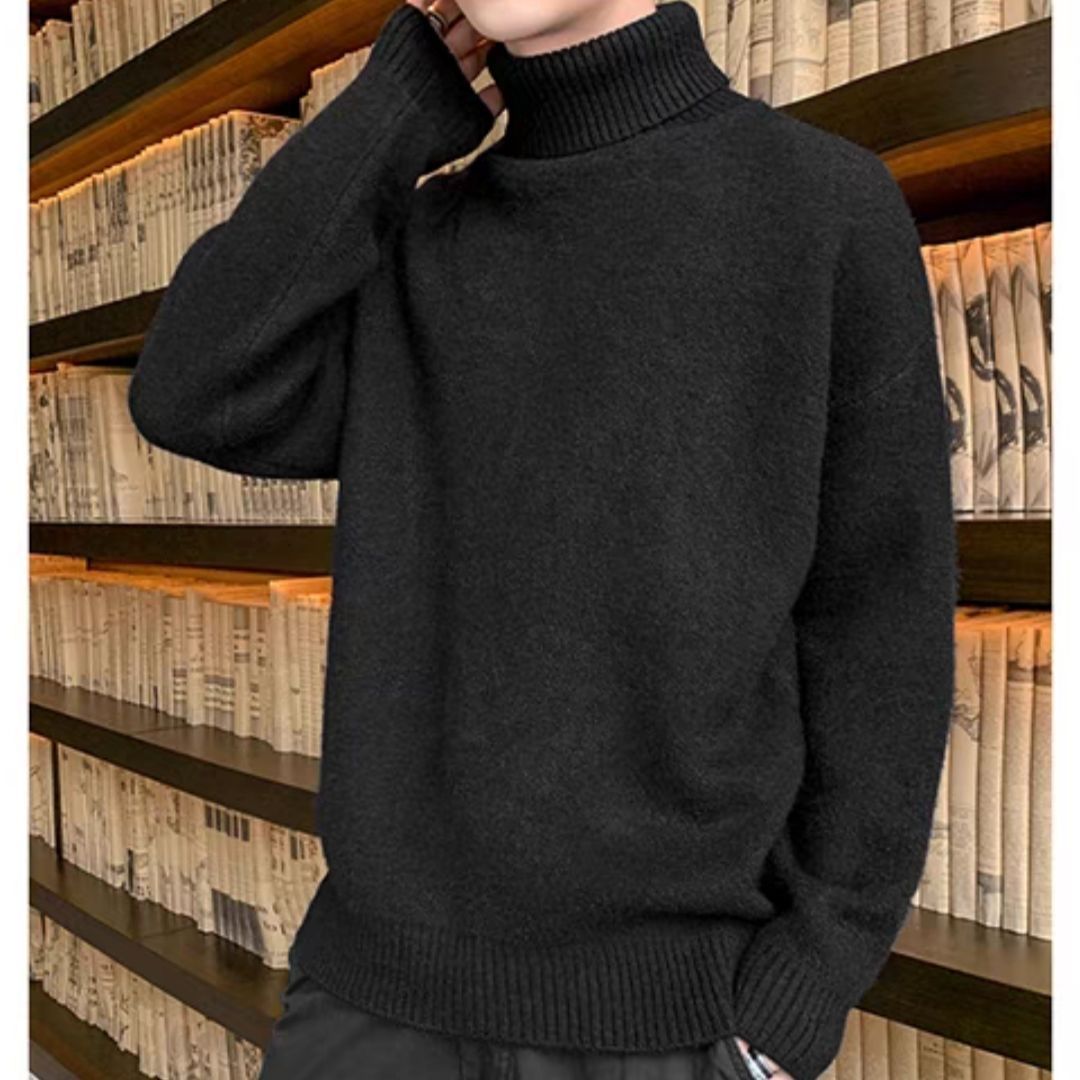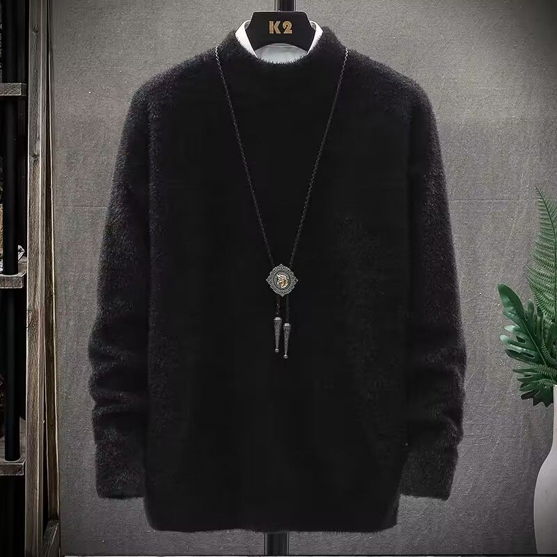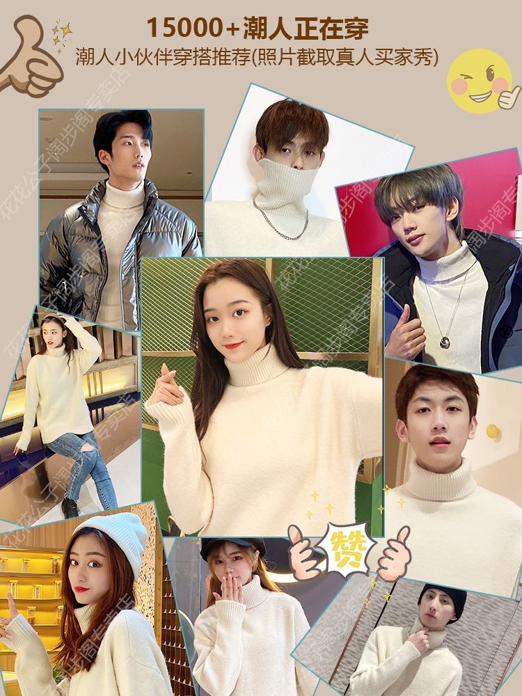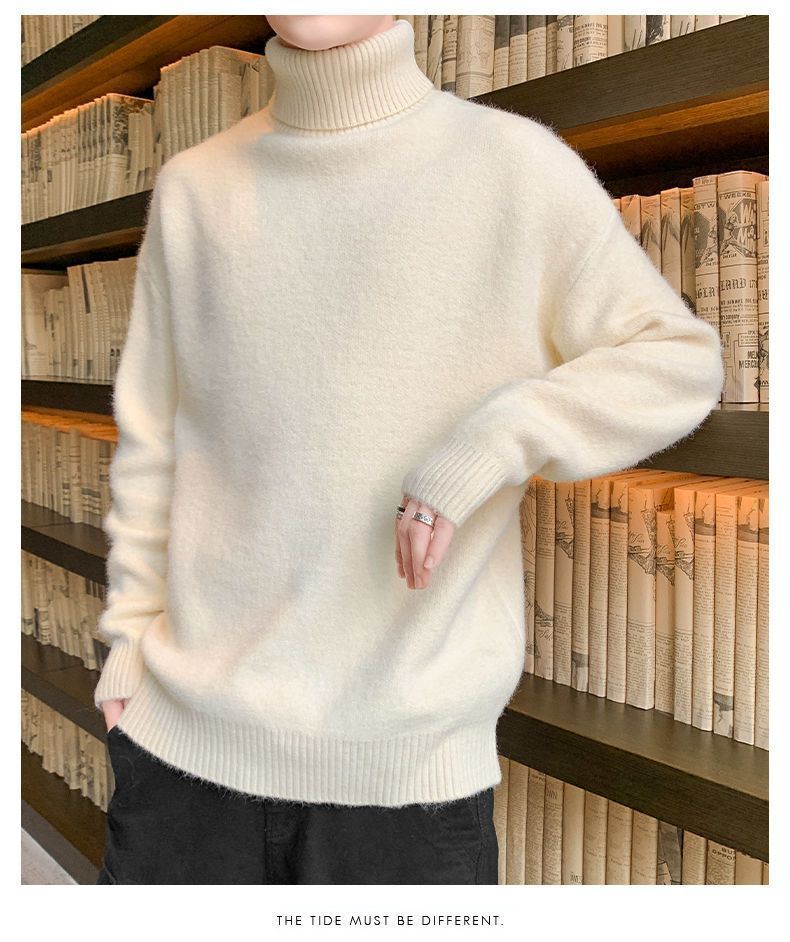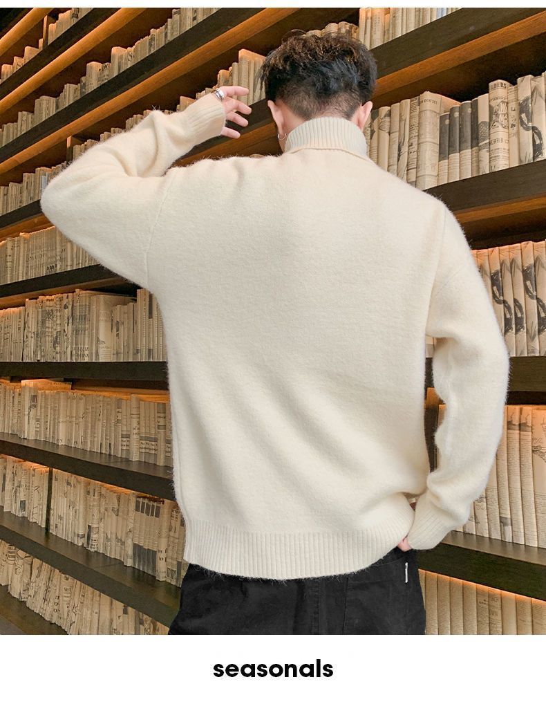 秋冬季加绒男士高领毛衣新款青少年宽松加厚保暖一体绒毛衣男冬季