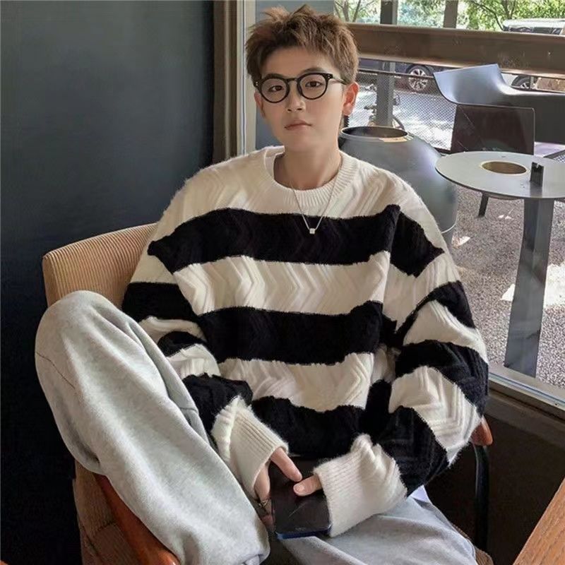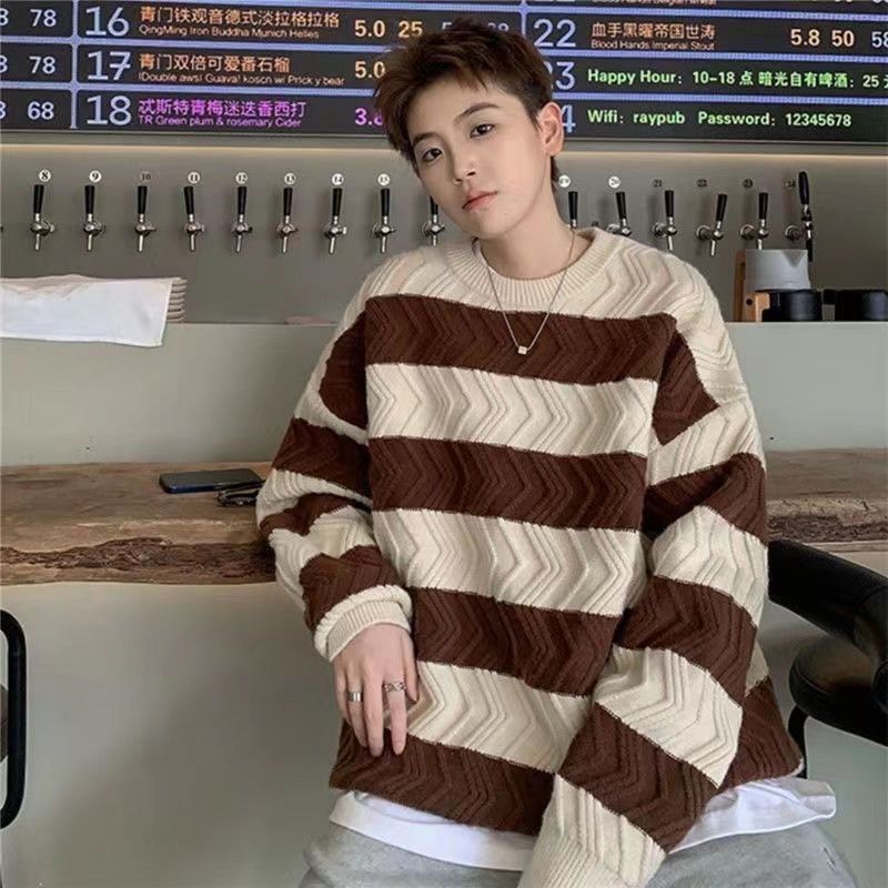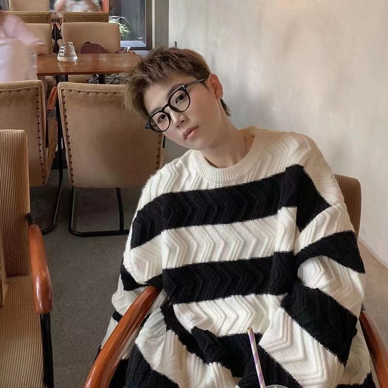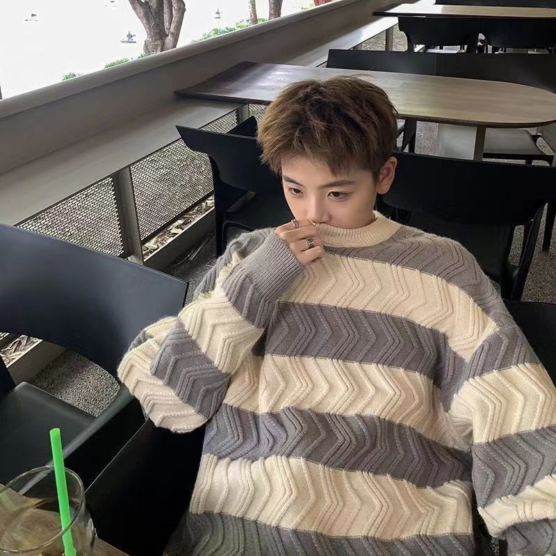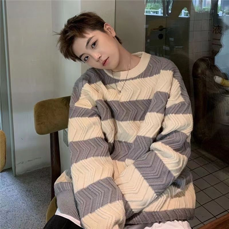 港风毛衣男冬季宽松加厚百搭潮流圆领针织衫韩版慵懒风情侣上衣