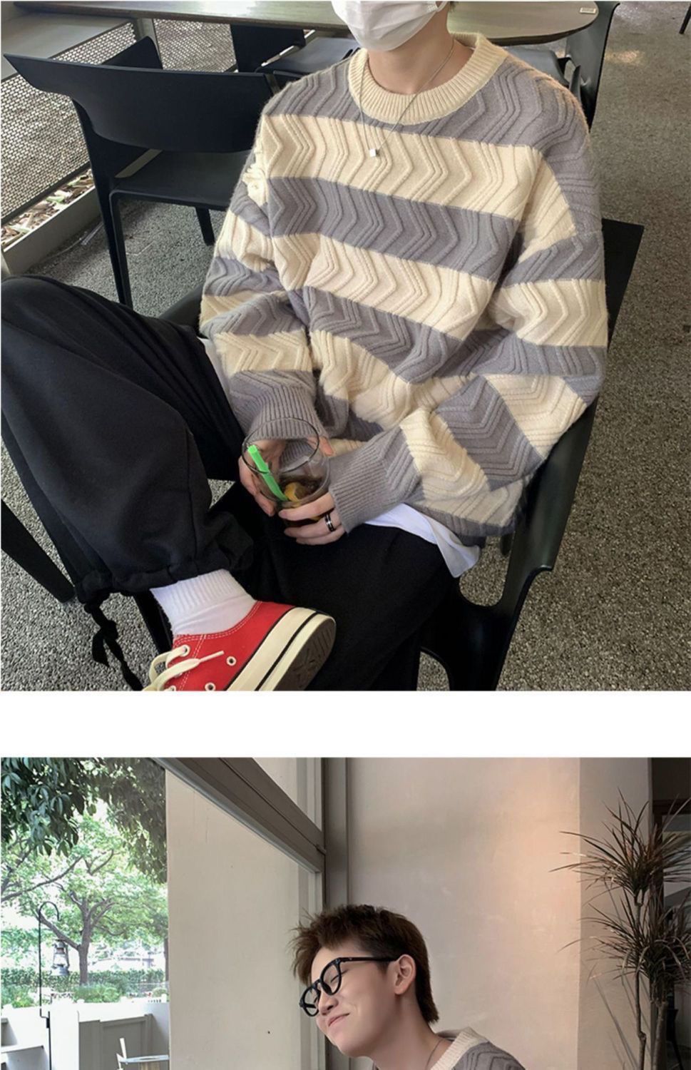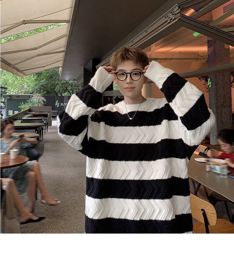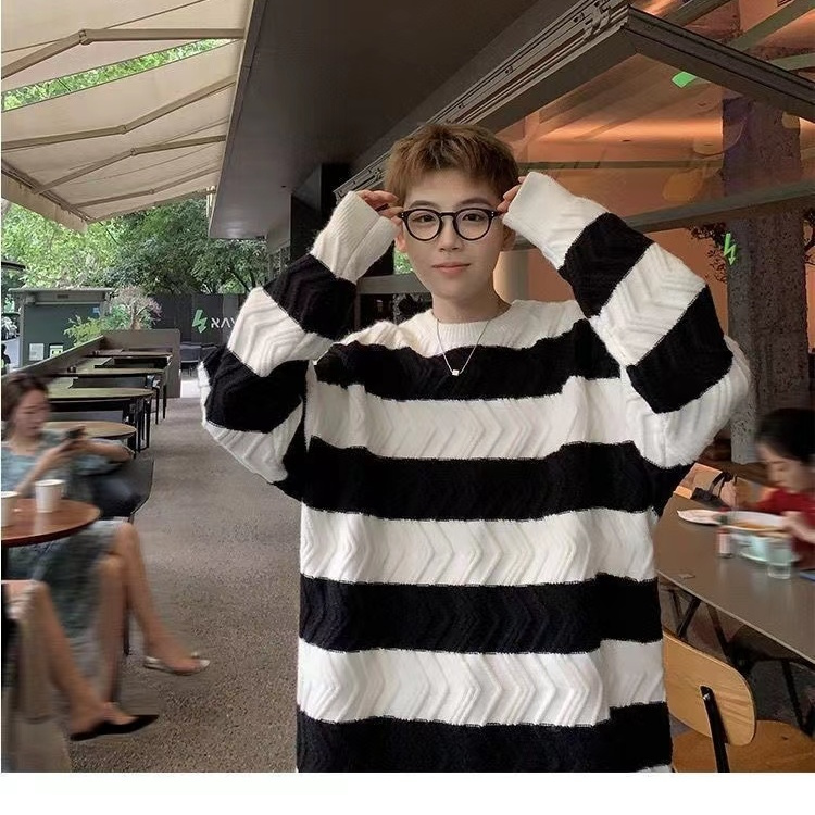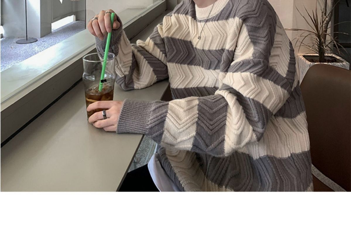 港风毛衣男冬季宽松加厚百搭潮流圆领针织衫韩版慵懒风情侣上衣