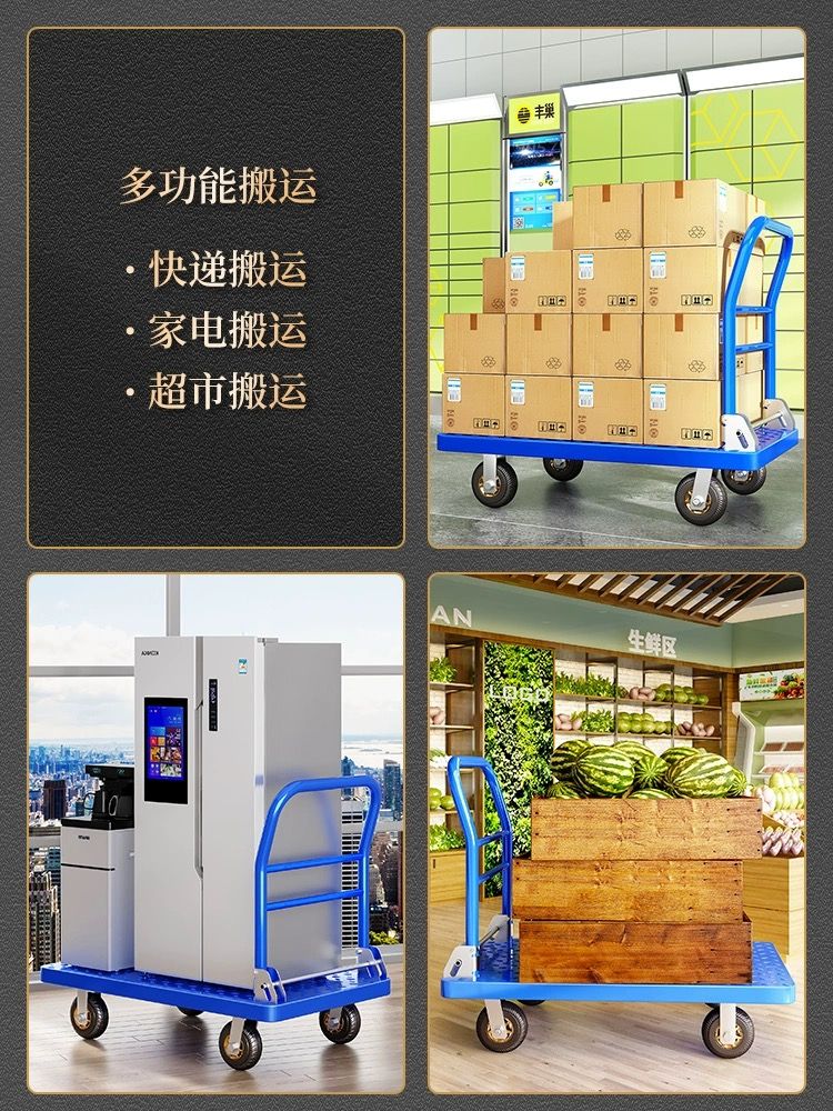 手推车折叠拉货静音拉车拖车平板车搬运车家用便携小推车可折叠