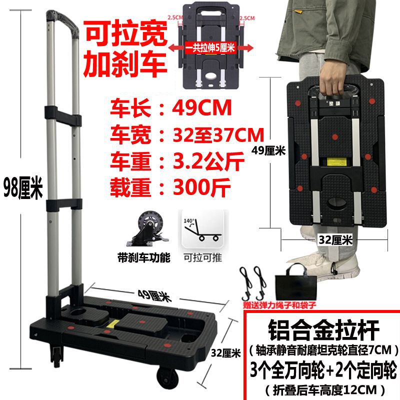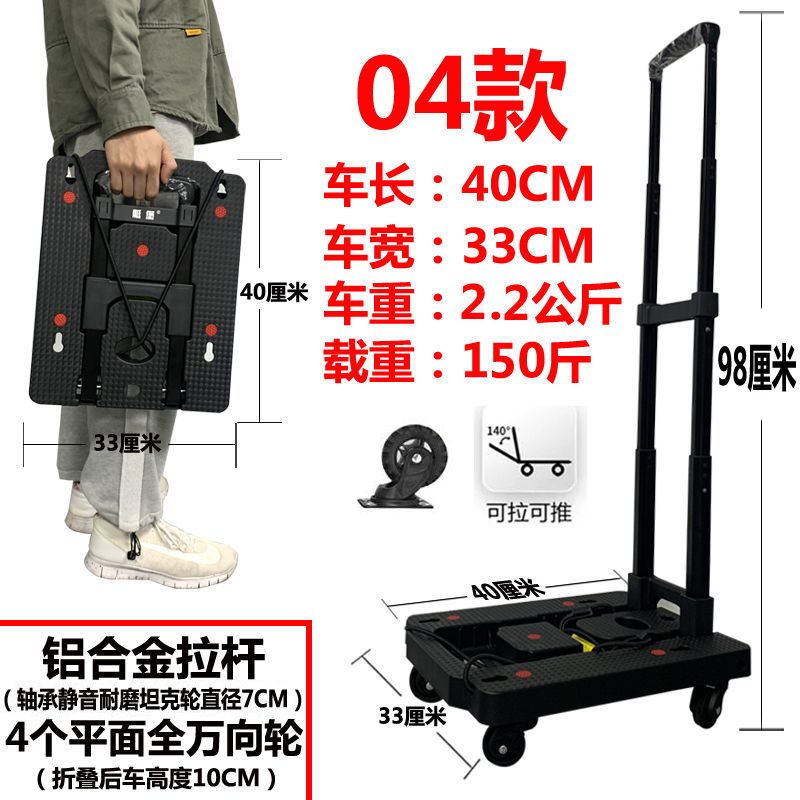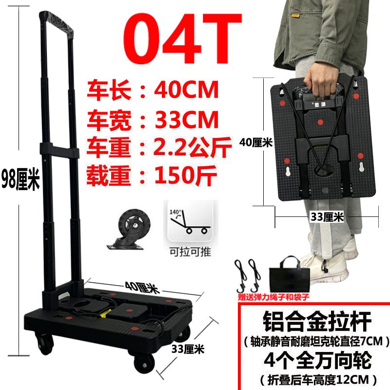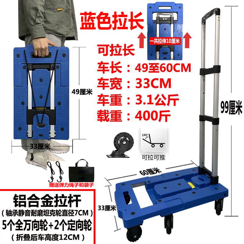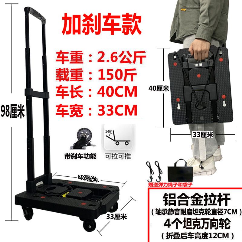 搬运手推车搬家拉杆拉货平板车小拖车便携折叠家用轻便静音手拉车
