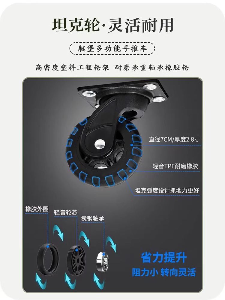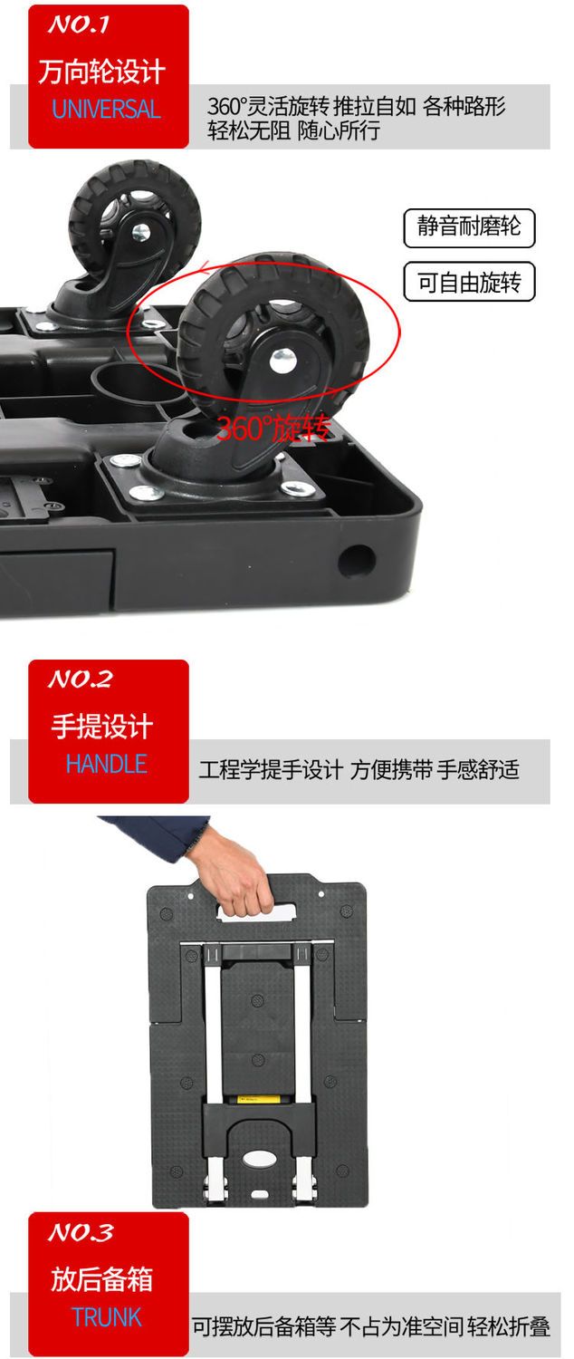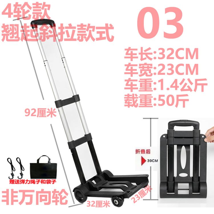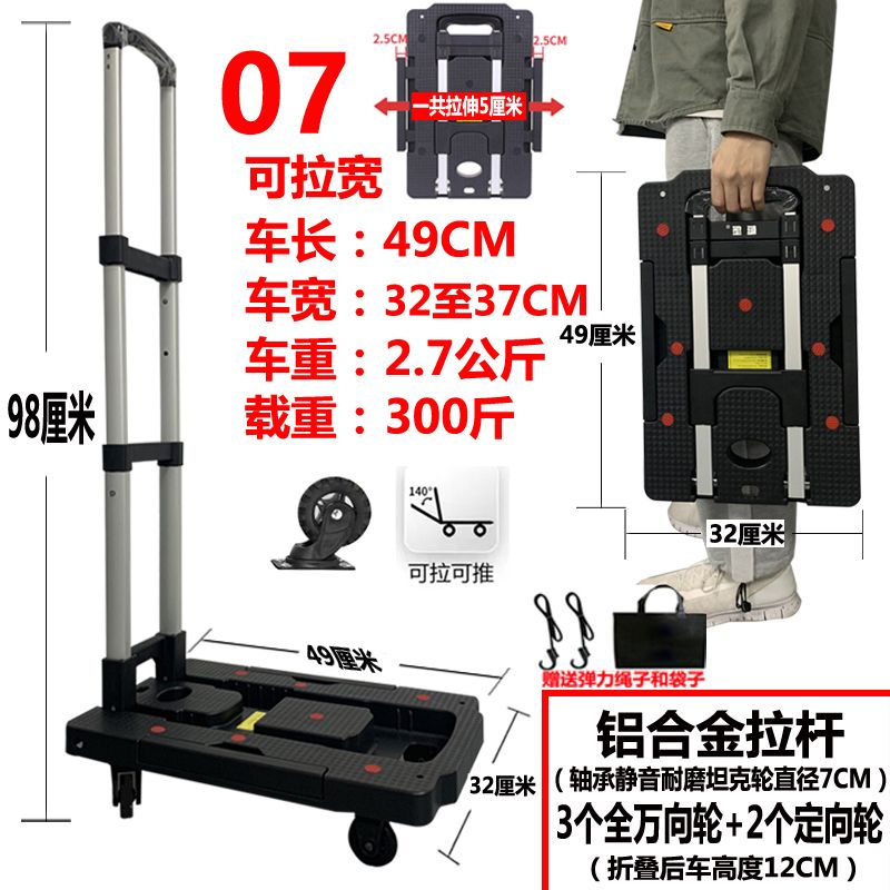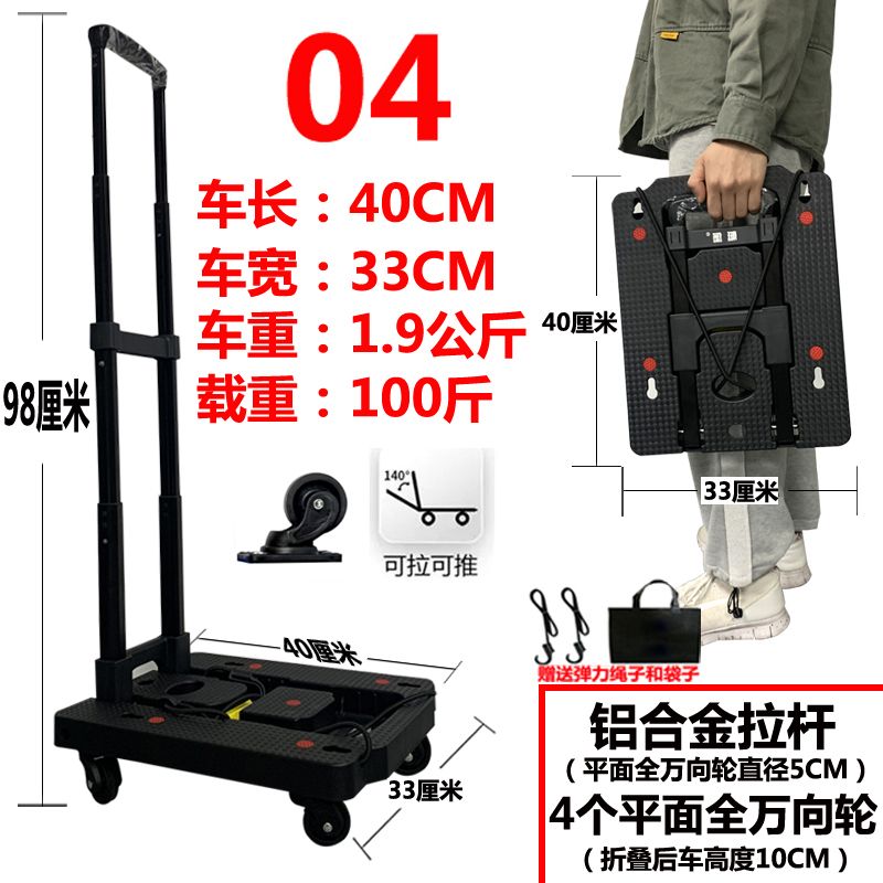 搬运手推车搬家拉杆拉货平板车小拖车便携折叠家用轻便静音手拉车