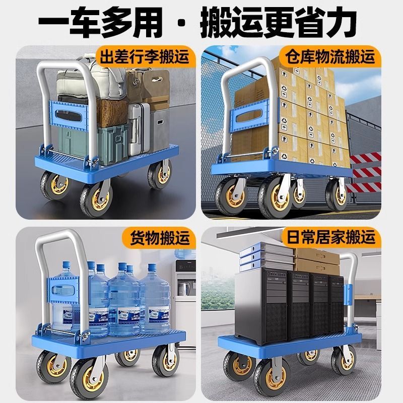 加厚手推车折叠拉货小推车搬货平板车家用静音搬运车轻便携手拉车