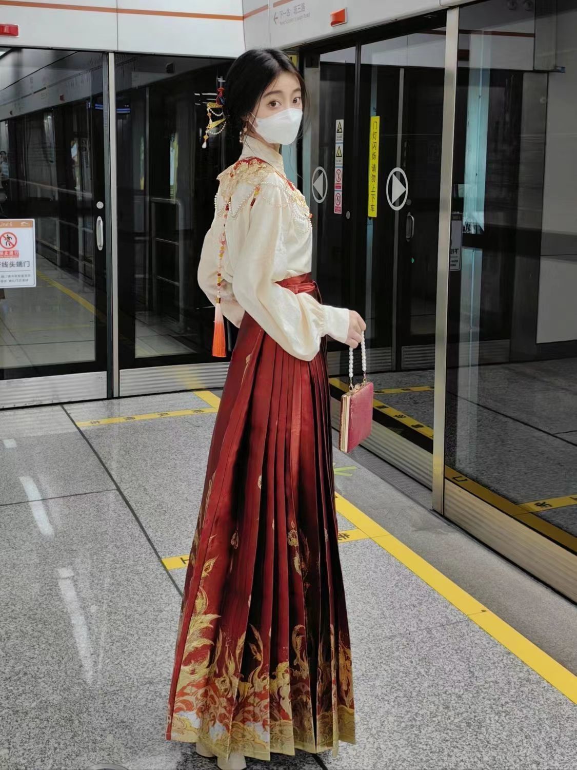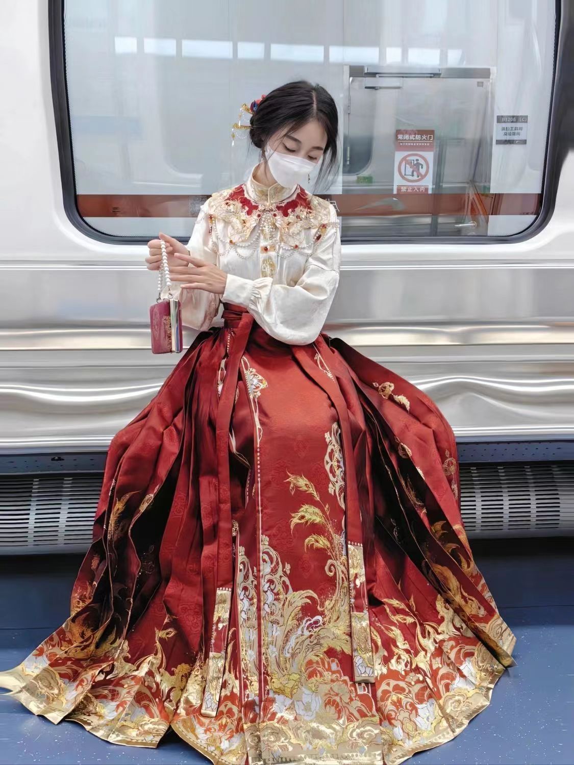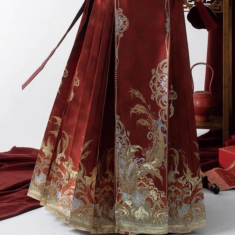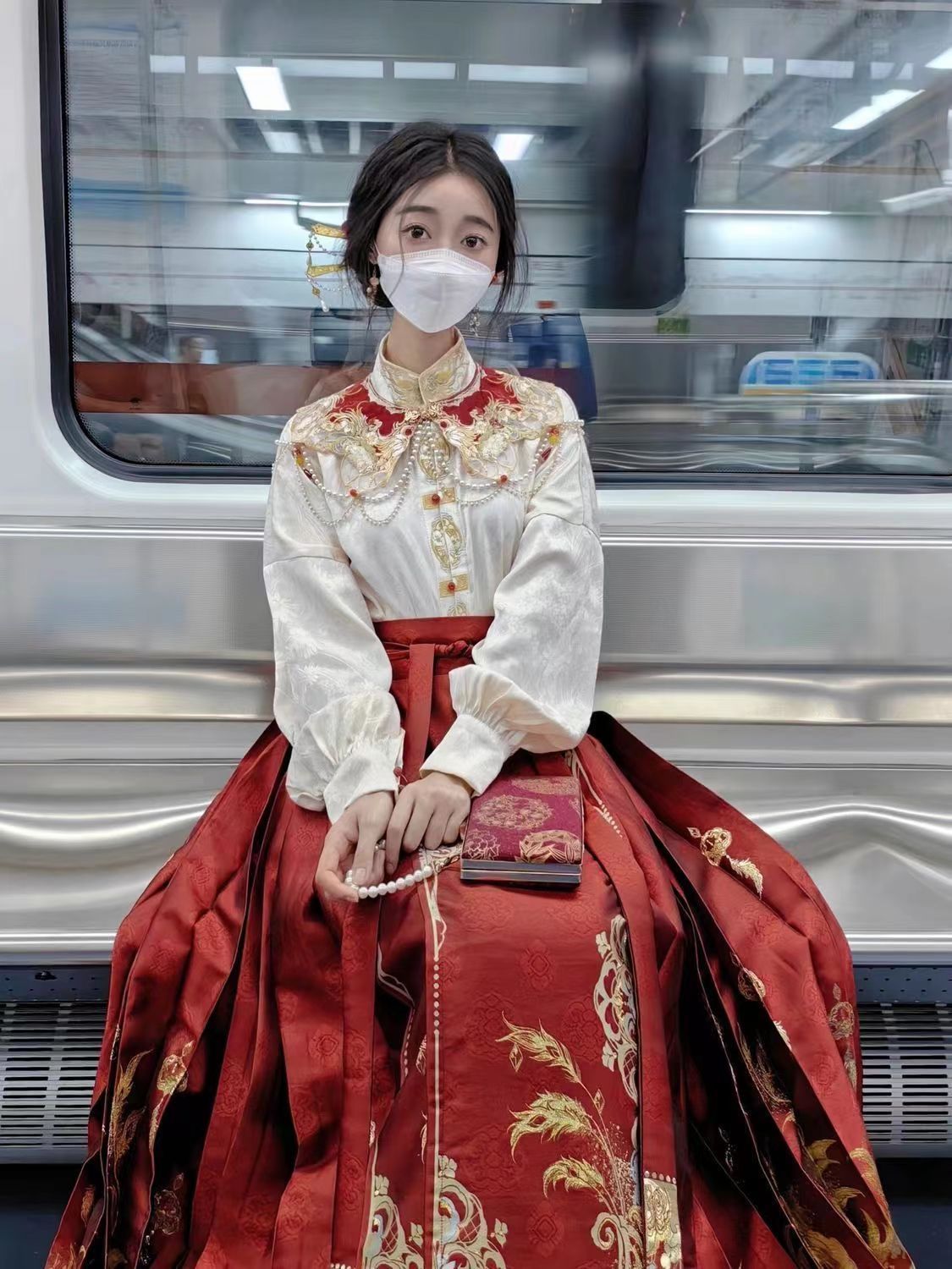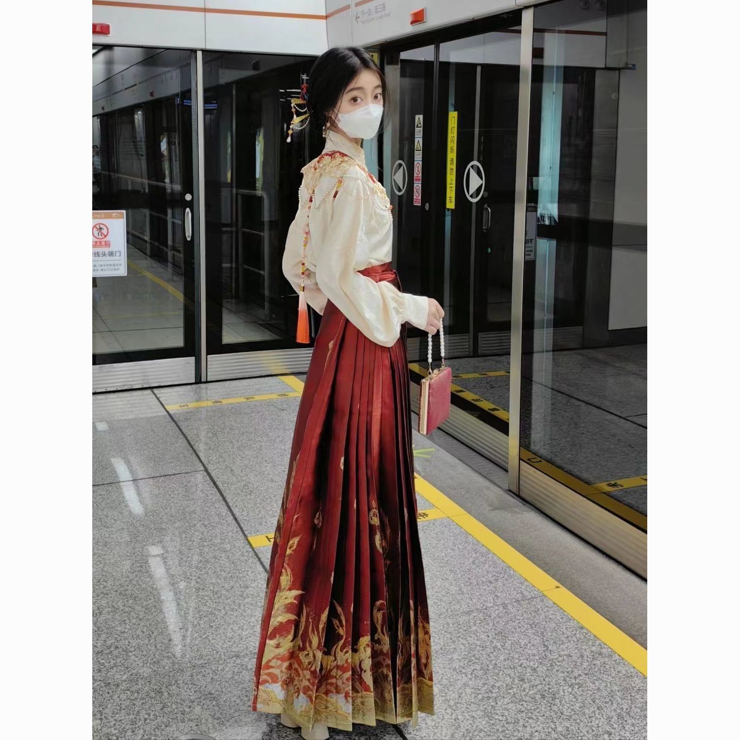 一堂缔约国风重工马面刺绣裙云肩汉服云肩敬酒订婚红色中式套装