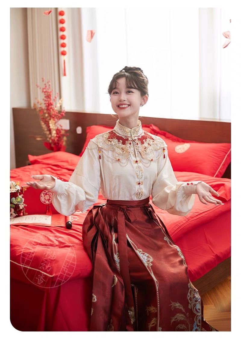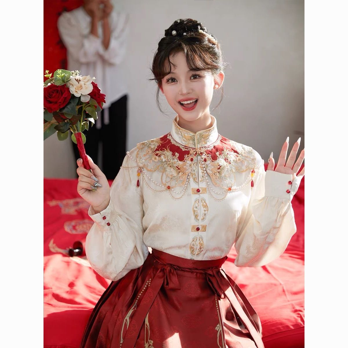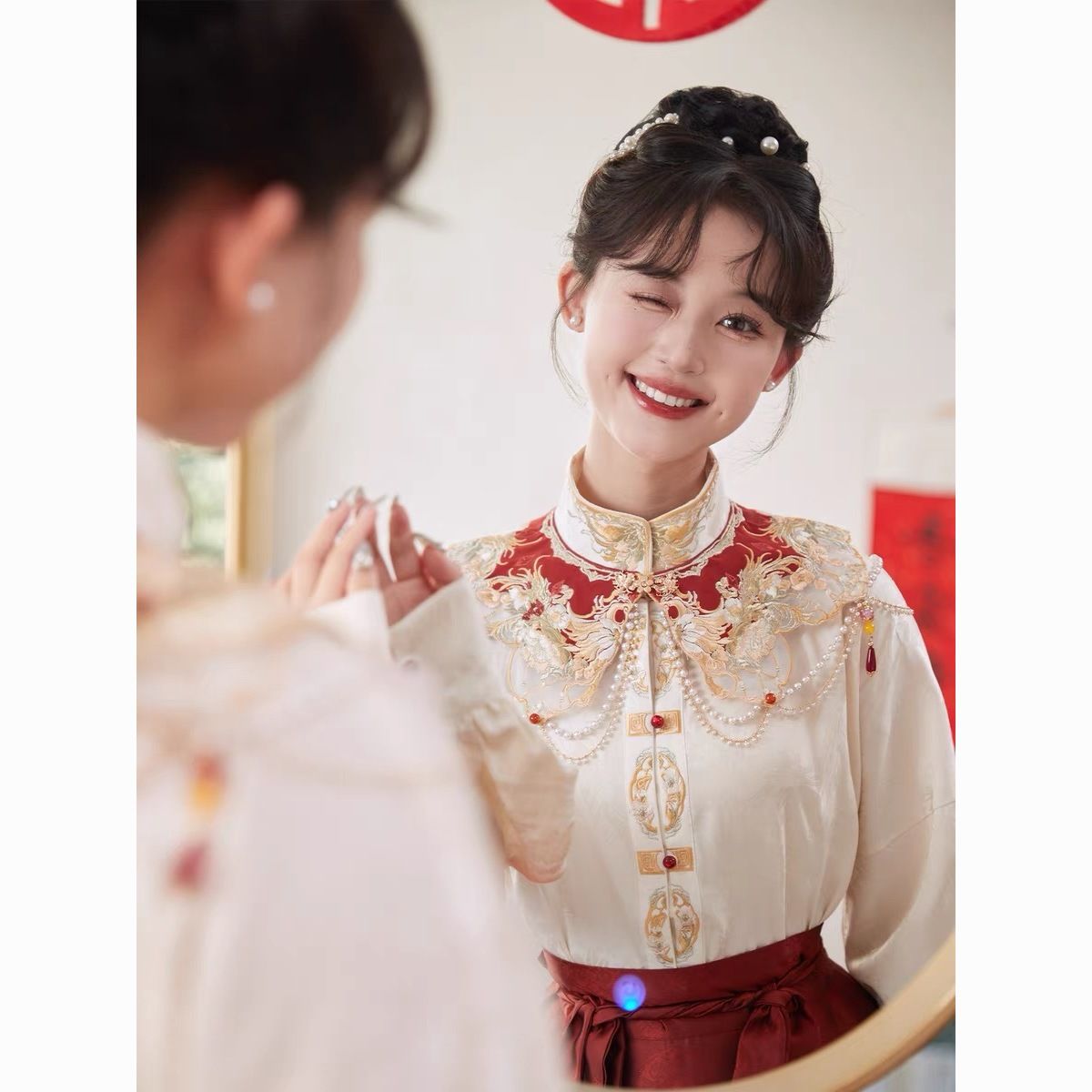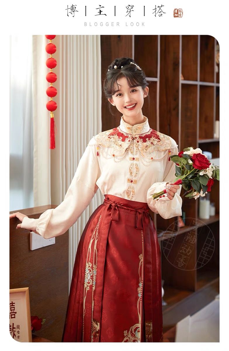 罗袖动香【一堂缔约】 重工马面裙云肩汉服女敬酒订婚服新中式