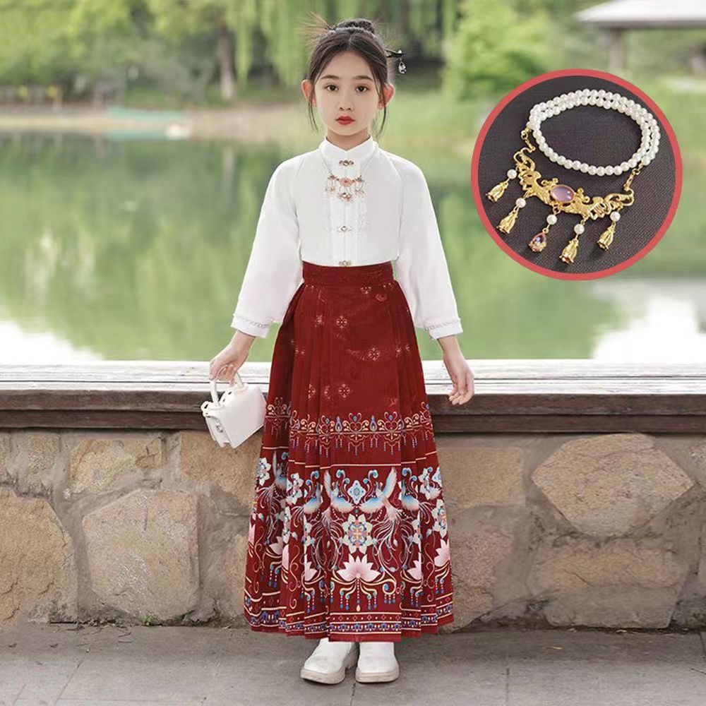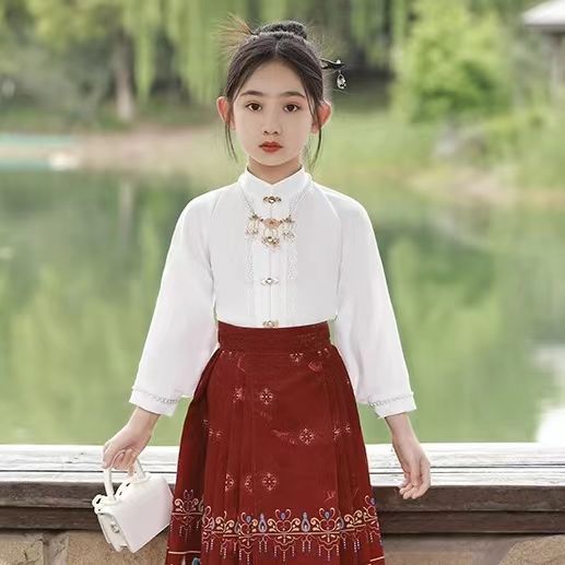 女童马面裙中国风儿童汉服改良明制古装2024年新款小女孩唐装秋款