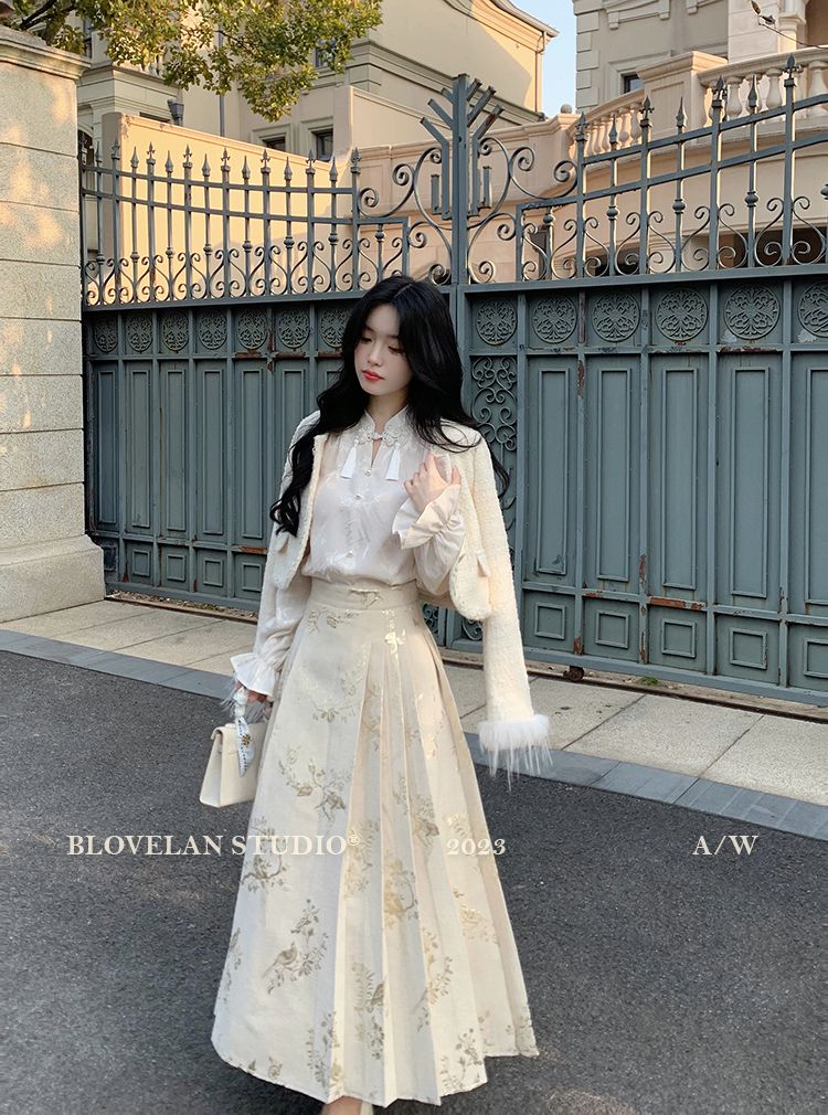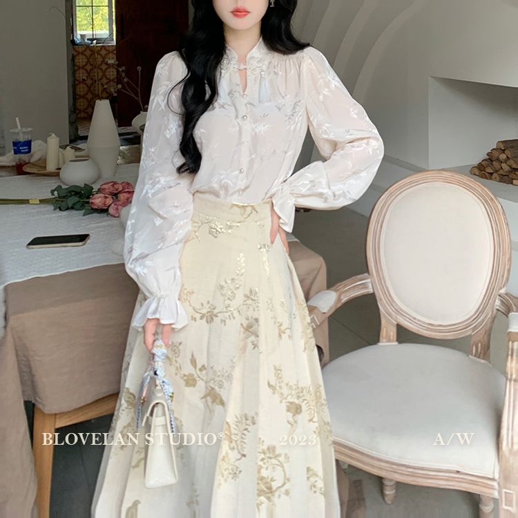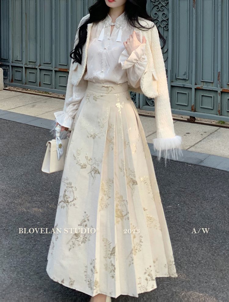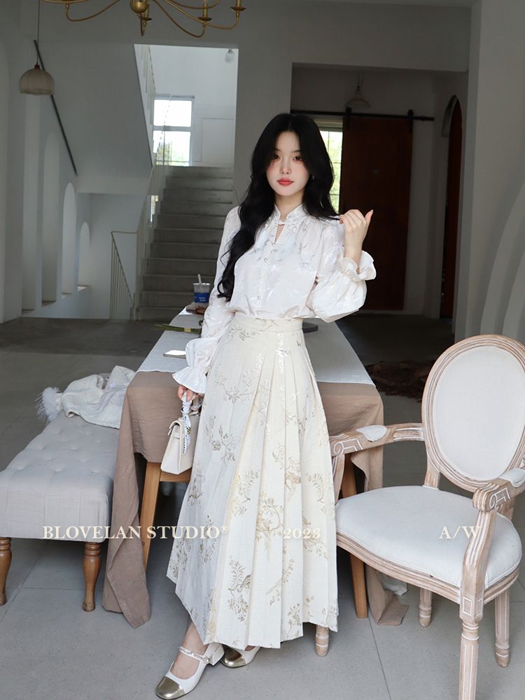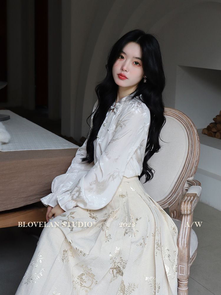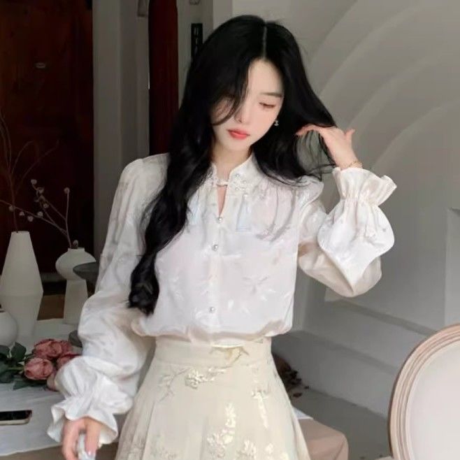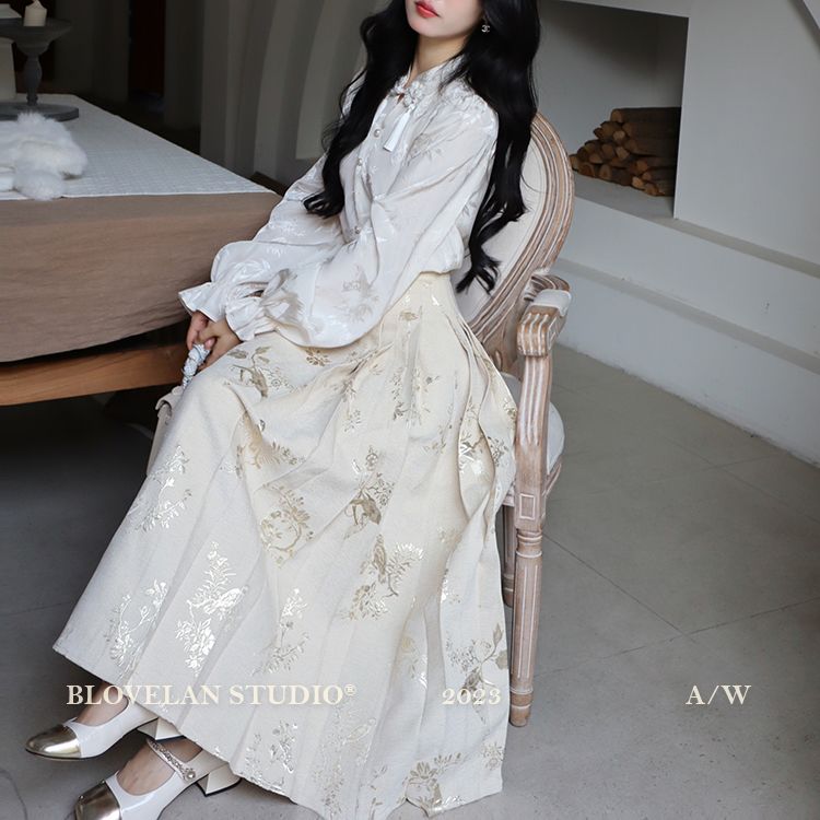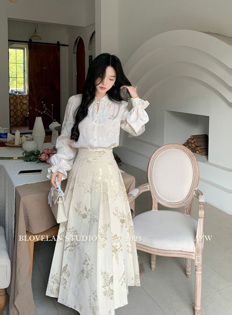 新中式国风马面裙套装女2024秋新款日常改良盘扣衬衫连衣裙两件套