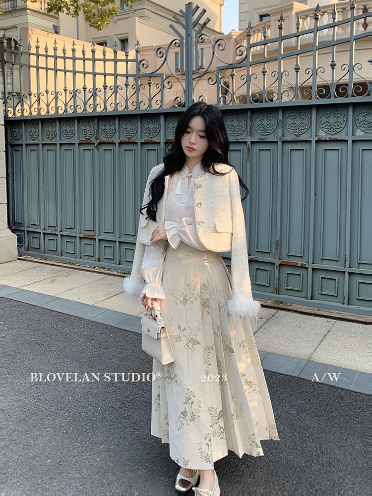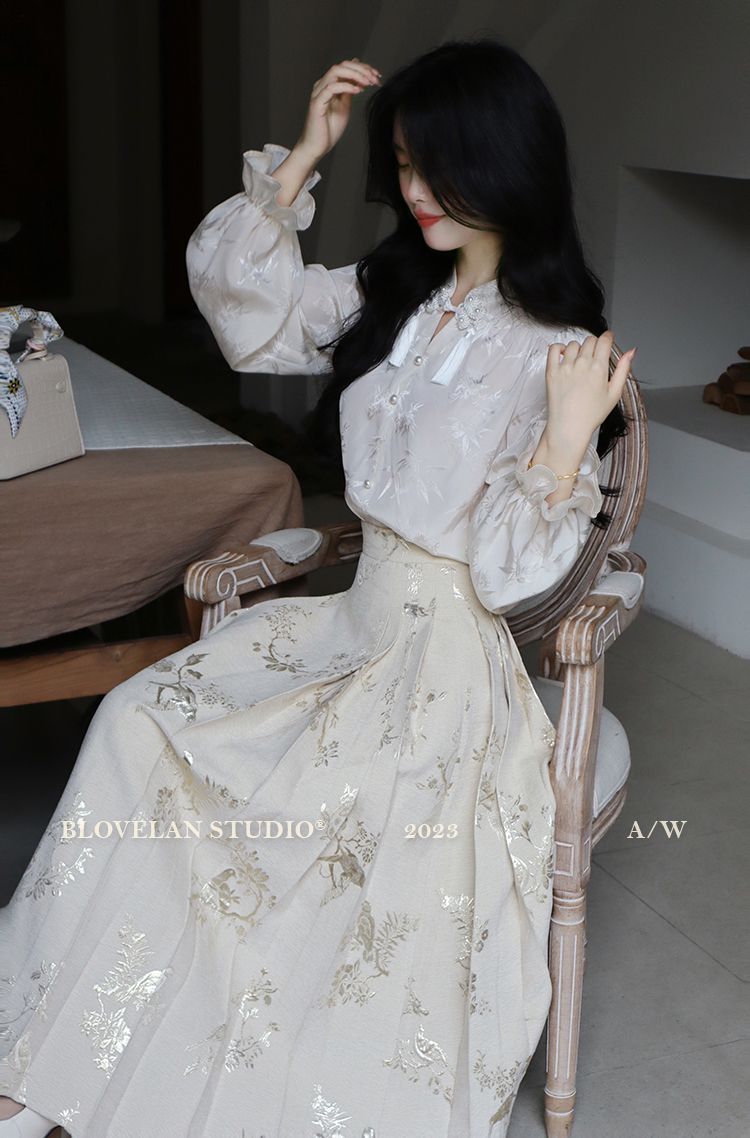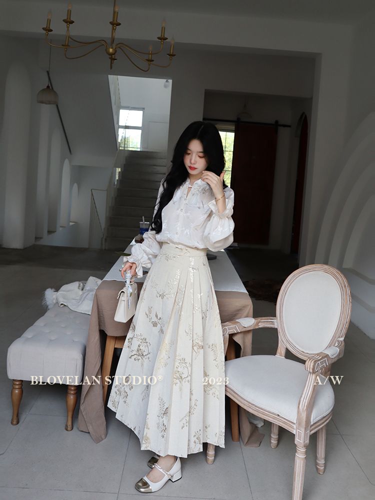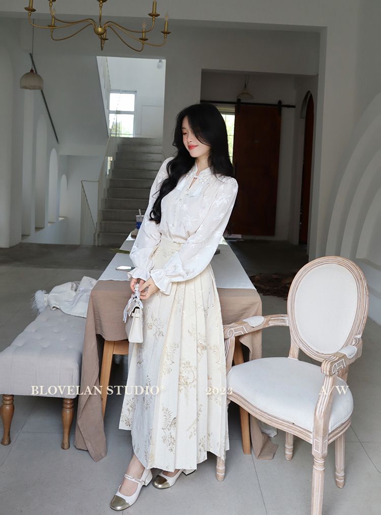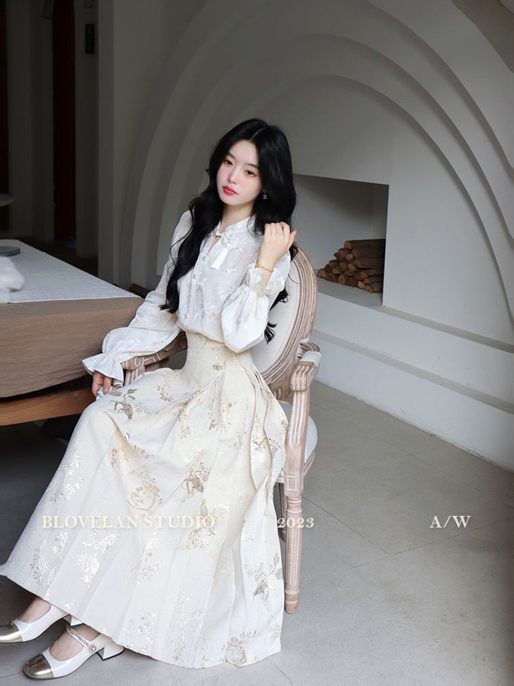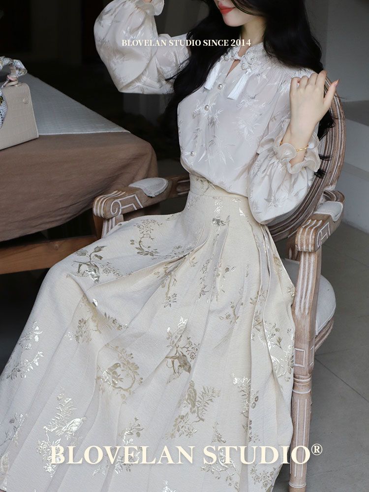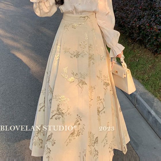 新中式国风马面裙套装女2024秋新款日常改良盘扣衬衫连衣裙两件套