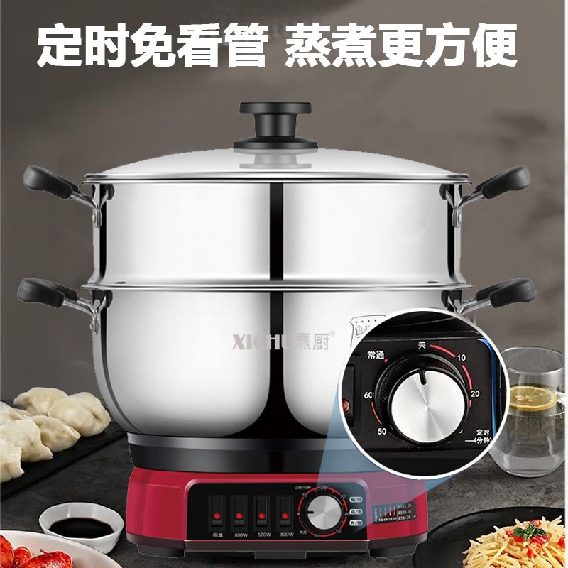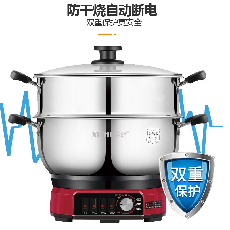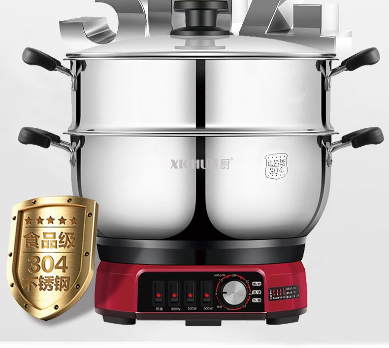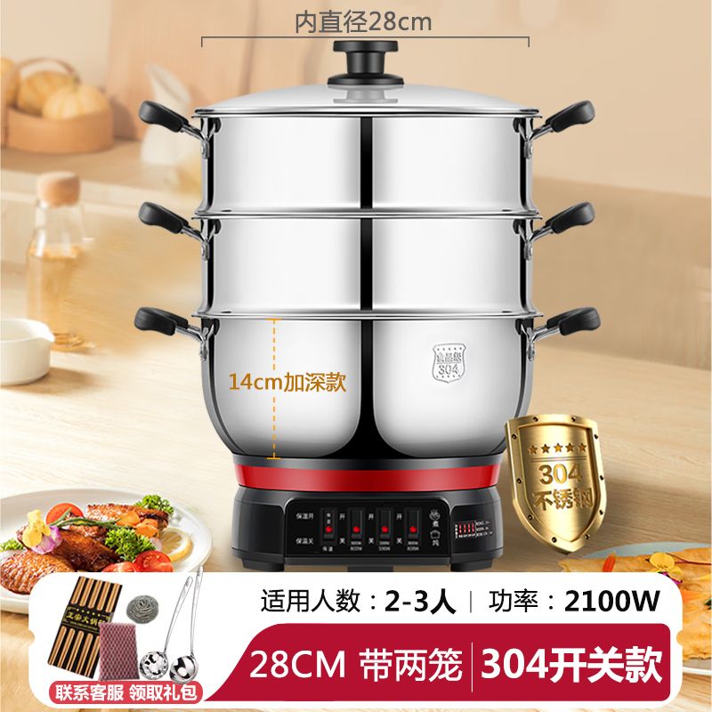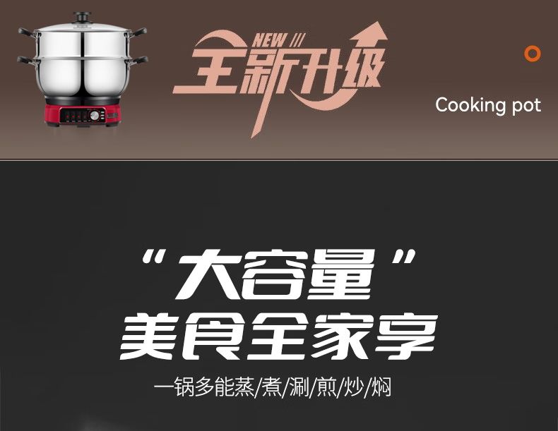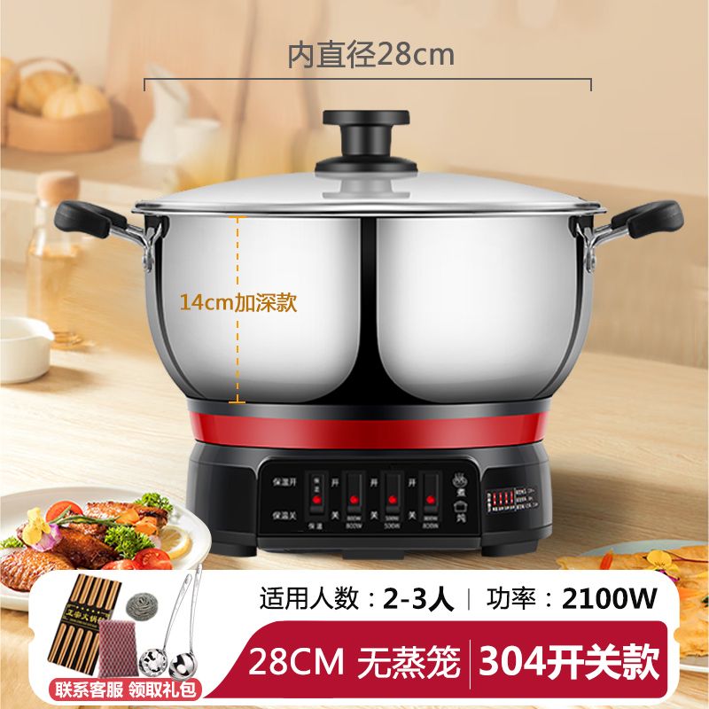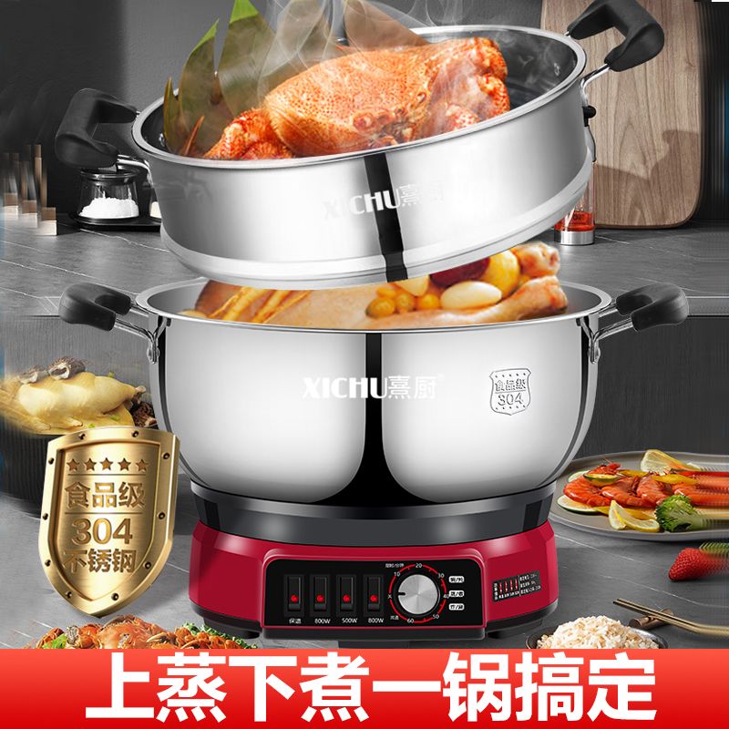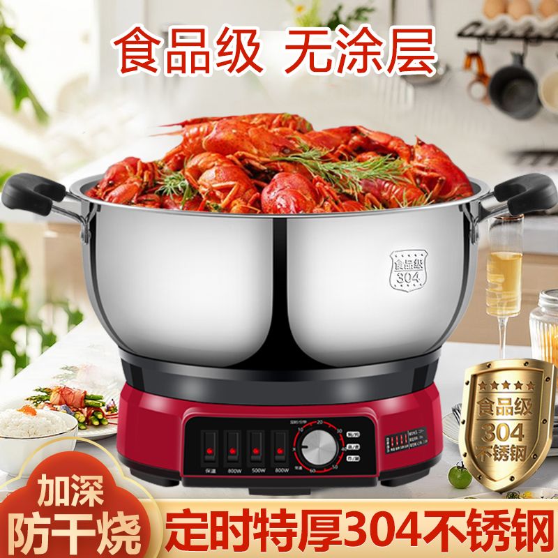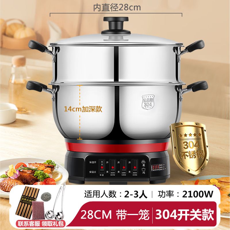 家用304不锈钢电锅火锅炒菜蒸煮炖一体电炒锅插电多用途电热锅