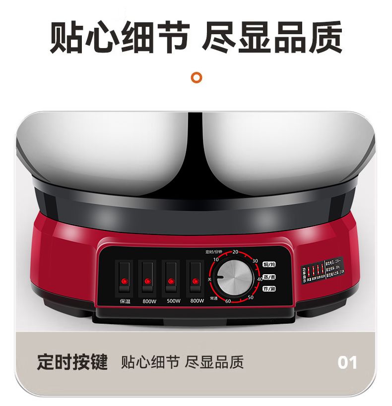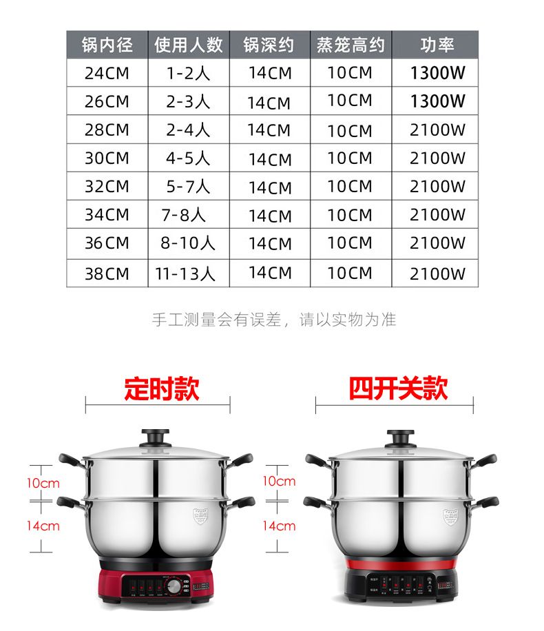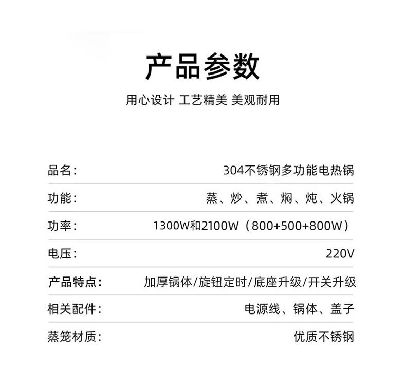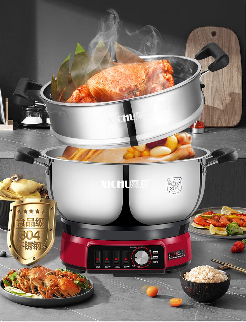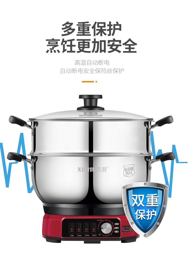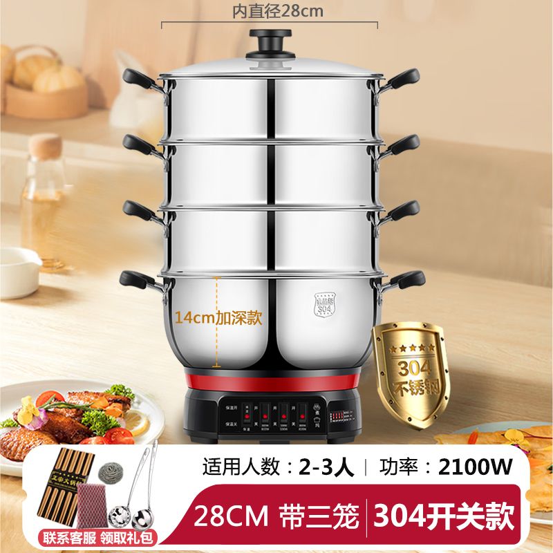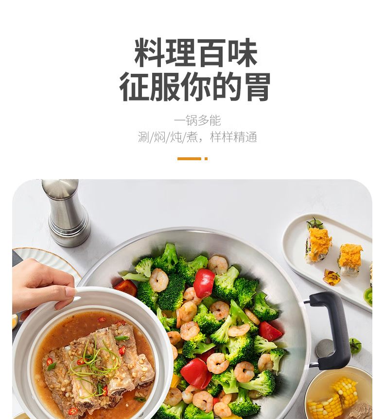 家用304不锈钢电锅火锅炒菜蒸煮炖一体电炒锅插电多用途电热锅