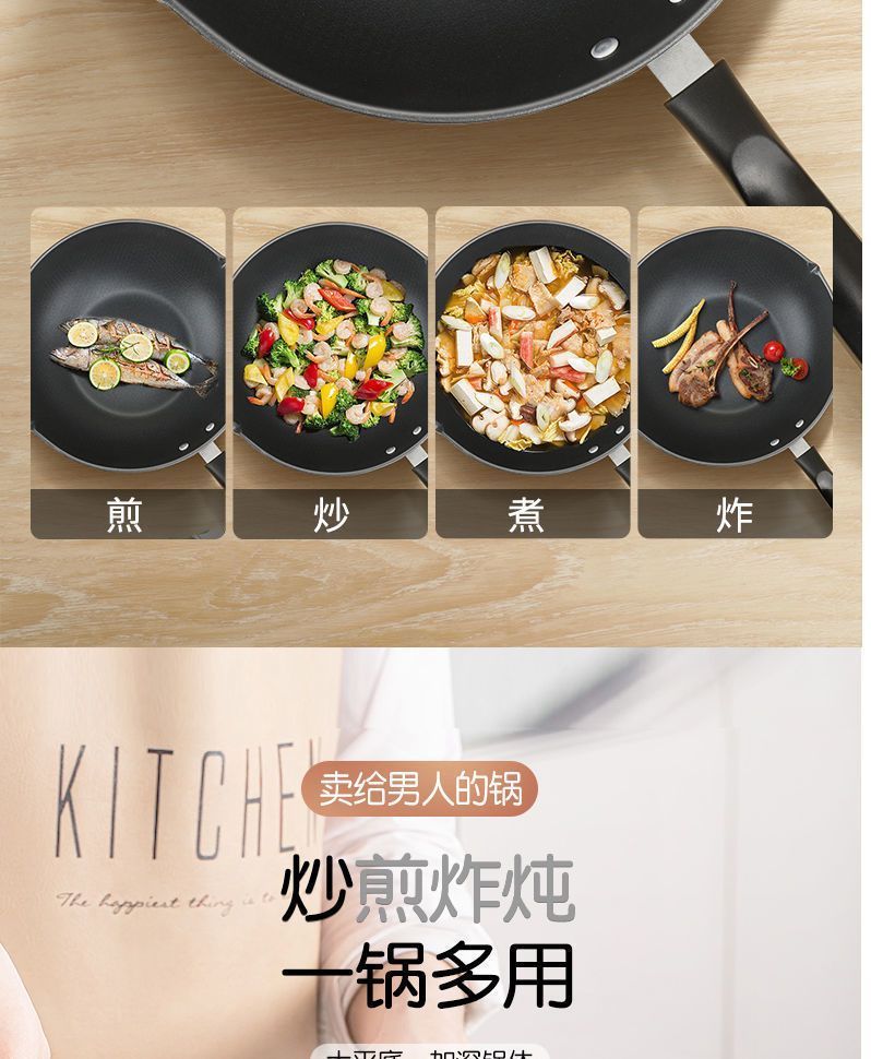 【煎炒两用】炒锅平底锅不粘锅家用炒菜锅多功能电磁炉燃气灶通用