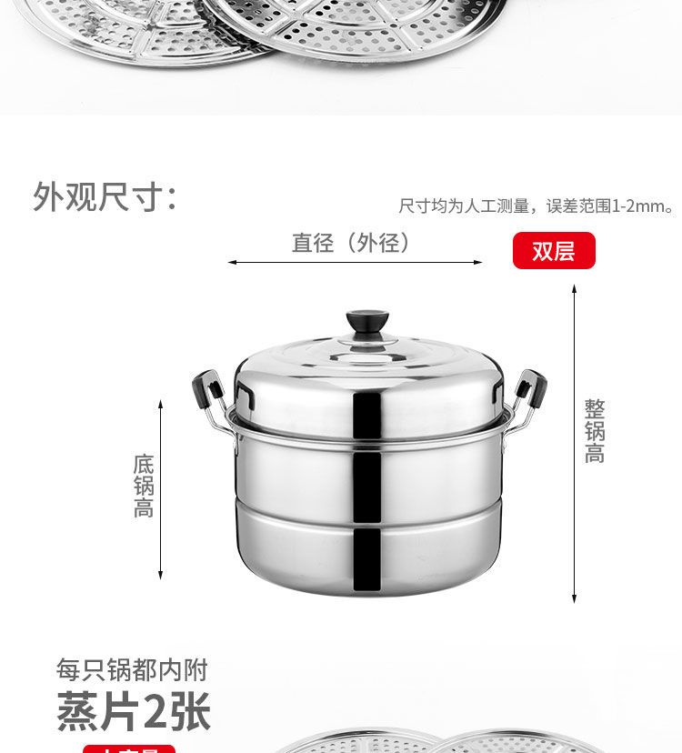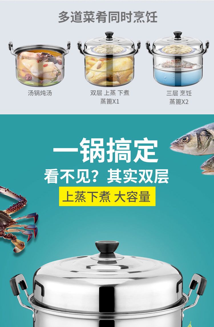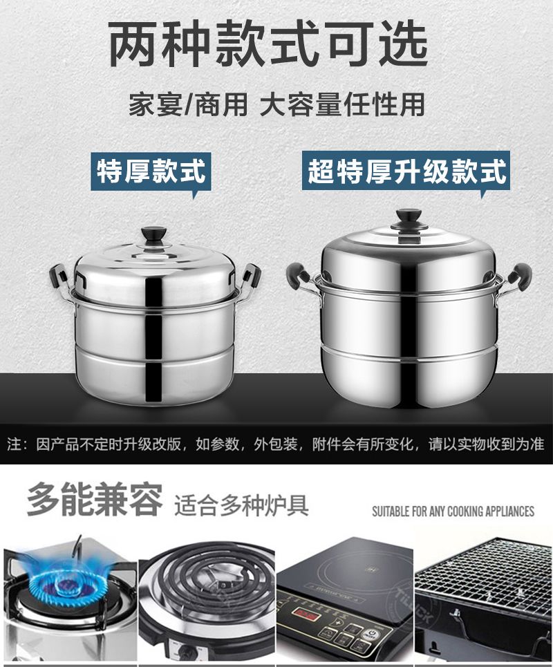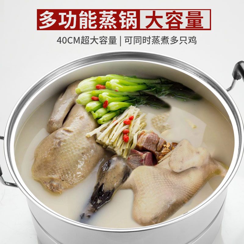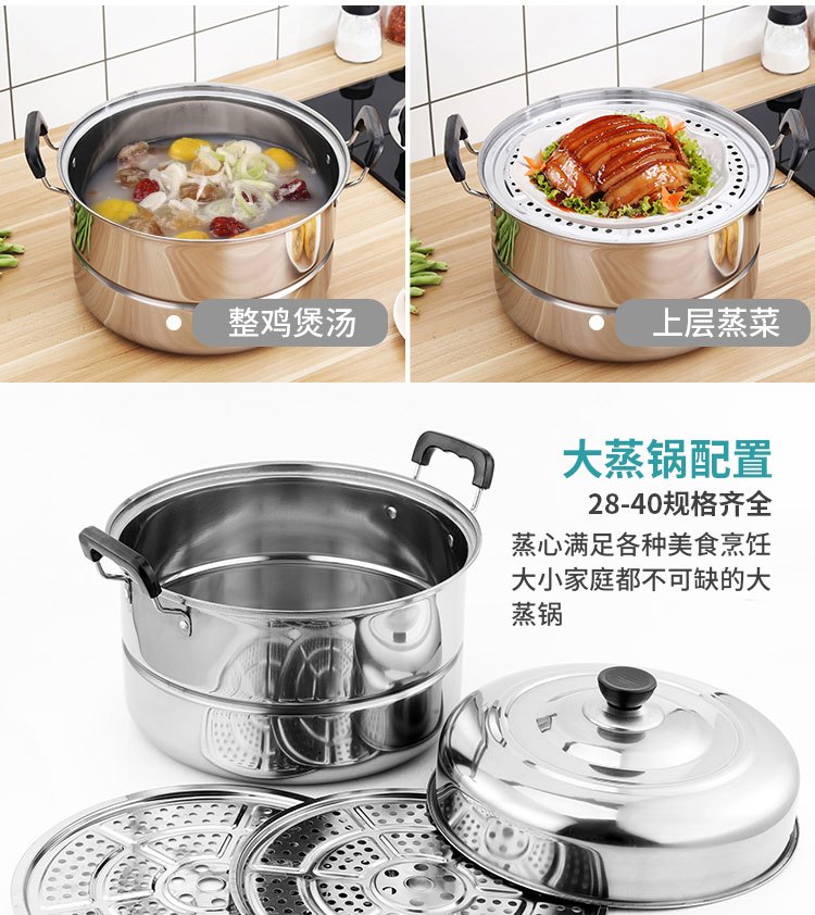 加厚大号蒸锅不锈钢双层家用二层蒸馍钢筋锅汤锅电磁炉煤气灶锅具