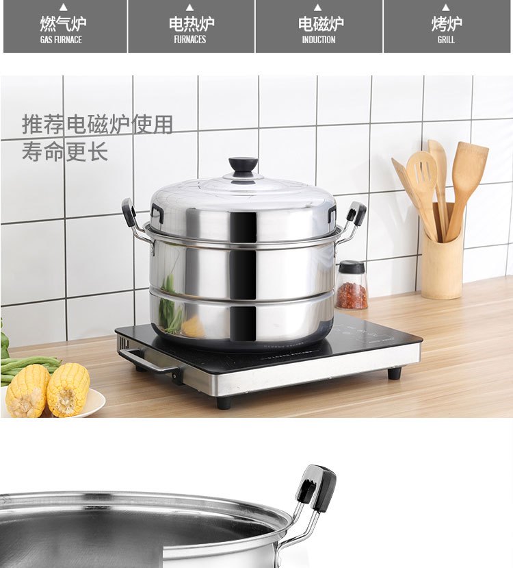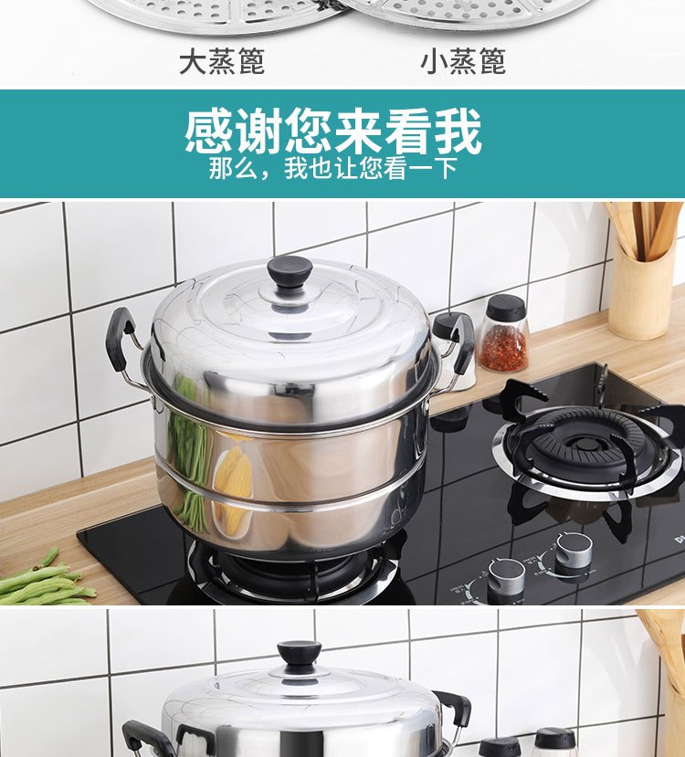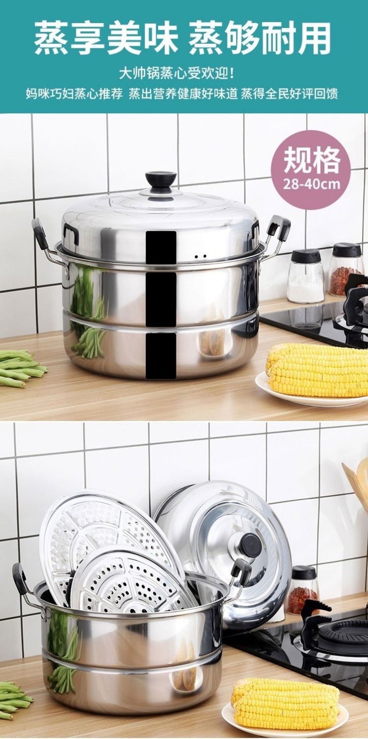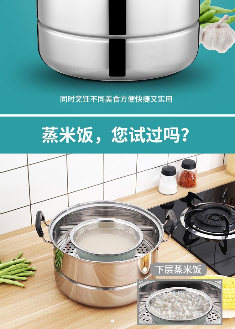 加厚大号蒸锅不锈钢双层家用二层蒸馍钢筋锅汤锅电磁炉煤气灶锅具