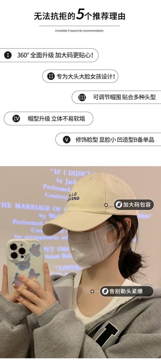 深顶大头围棒球帽子女新款百搭显脸小韩版字母刺绣加大加宽鸭舌帽