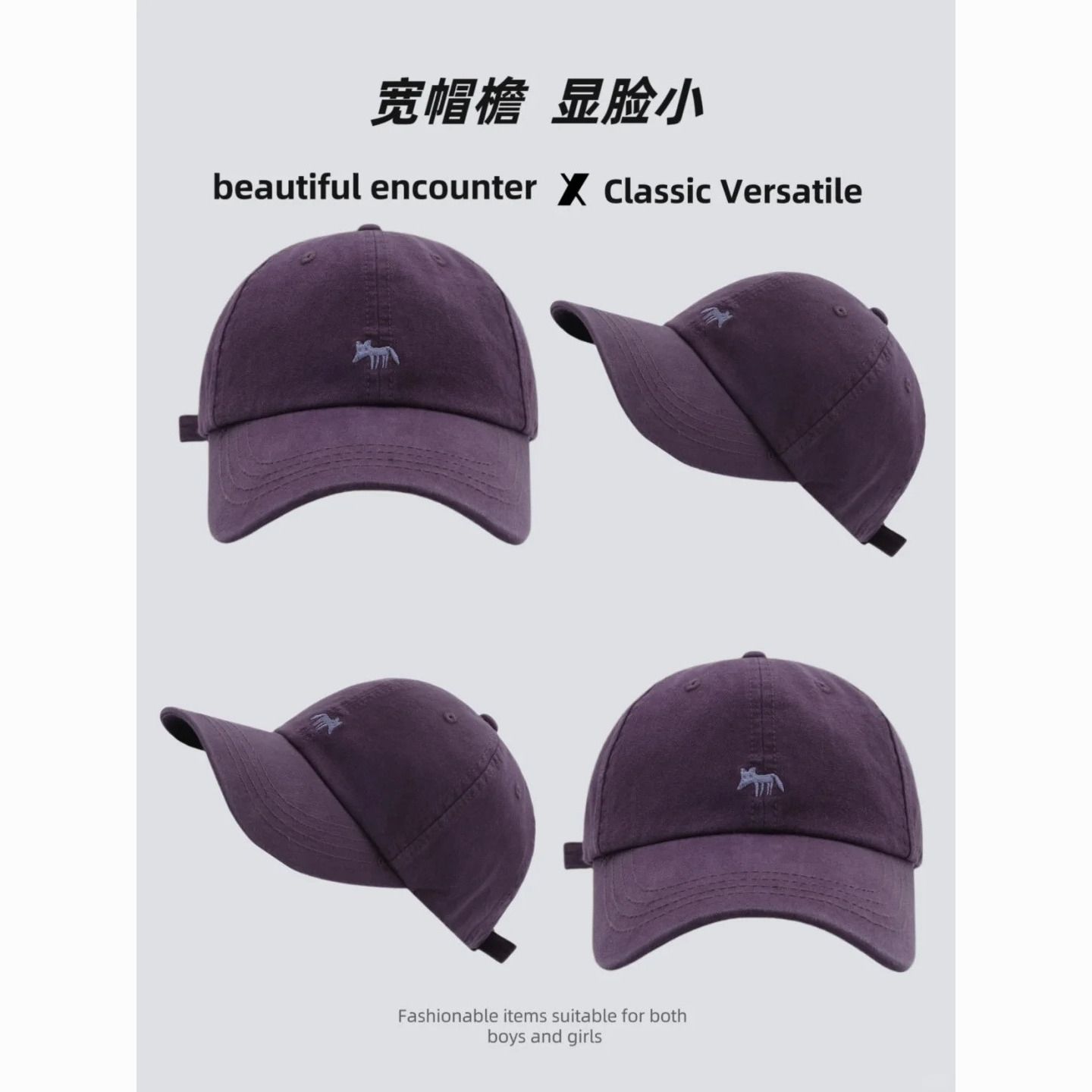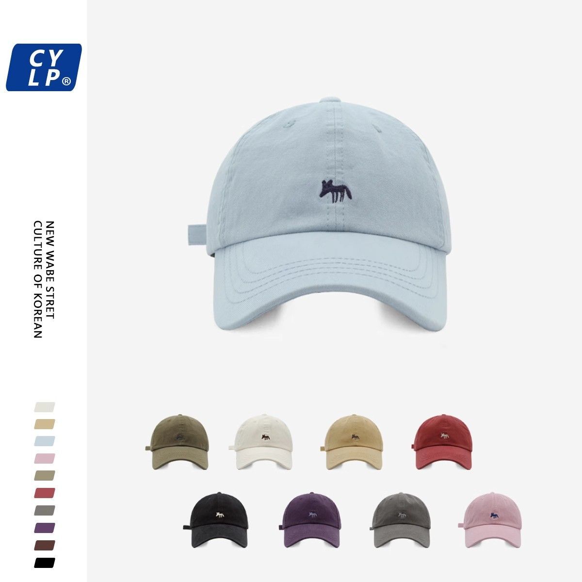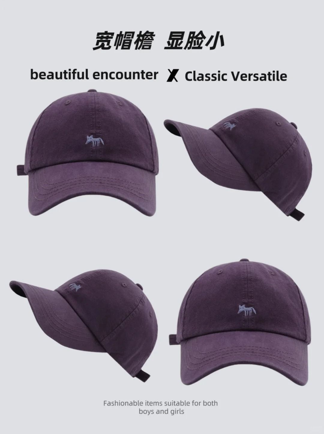 韩版2024新款小狐狸刺绣棒球帽宽帽檐大脸显脸小男女大头围鸭舌帽