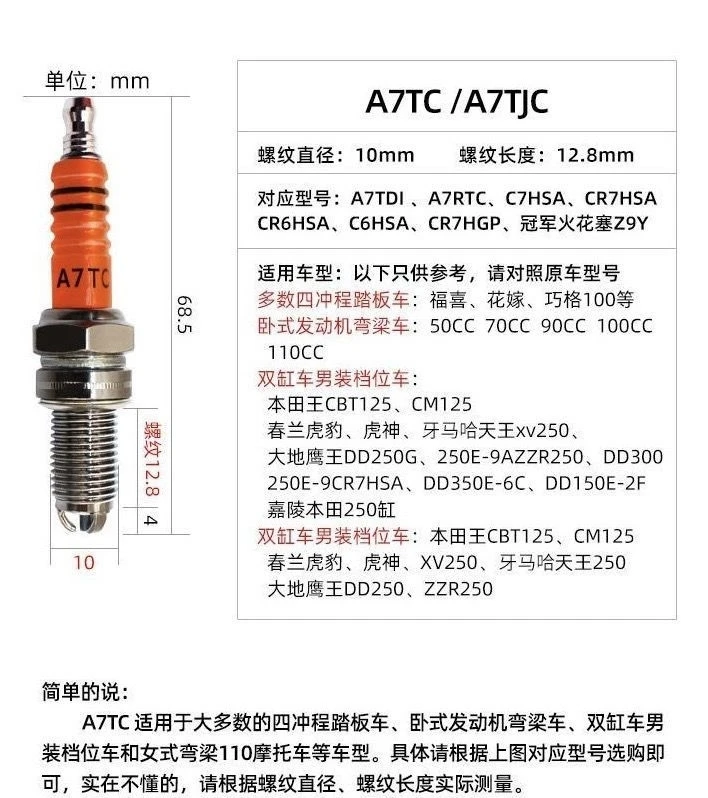 【铂金三爪】摩托车火花塞 配件踏板车弯梁 110 125 100 150 火嘴