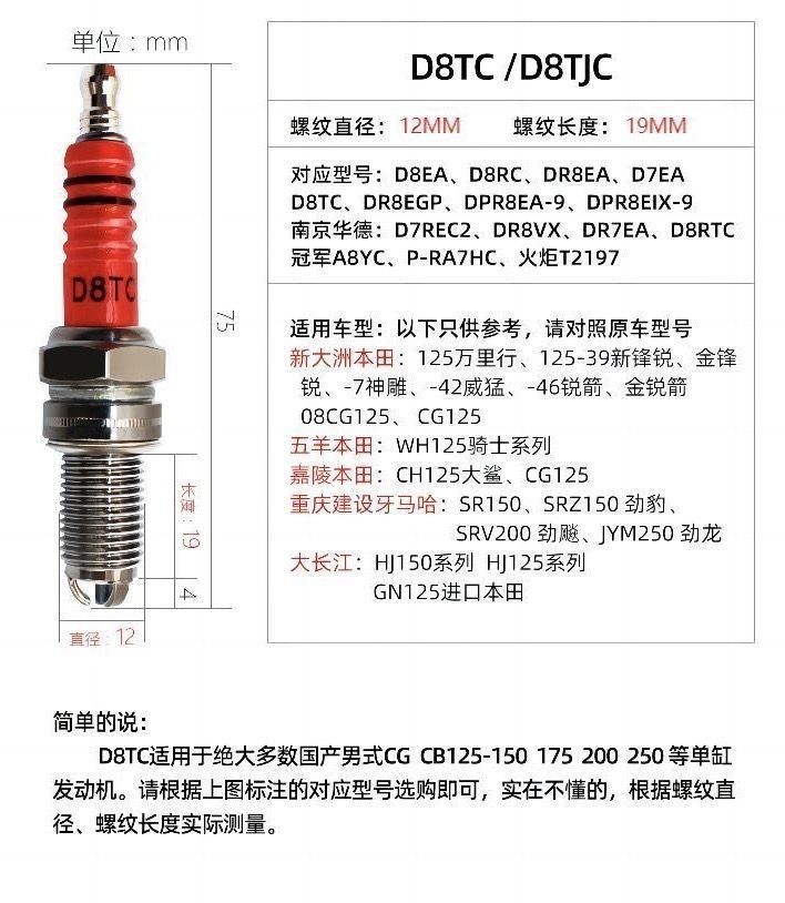 【铂金三爪】摩托车火花塞 配件踏板车弯梁 110 125 100 150 火嘴