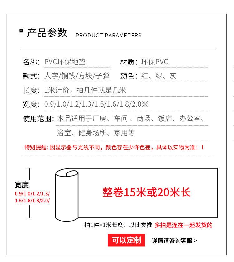 PVC防滑垫地垫防水塑料地毯楼梯厨房进门口门垫加厚耐磨地板垫子