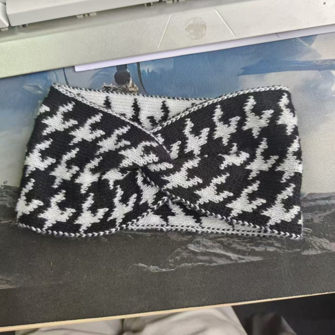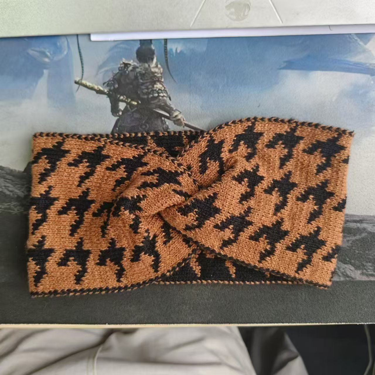 时尚复古千鸟格针织发带女秋冬洗脸头箍弹力头巾发饰